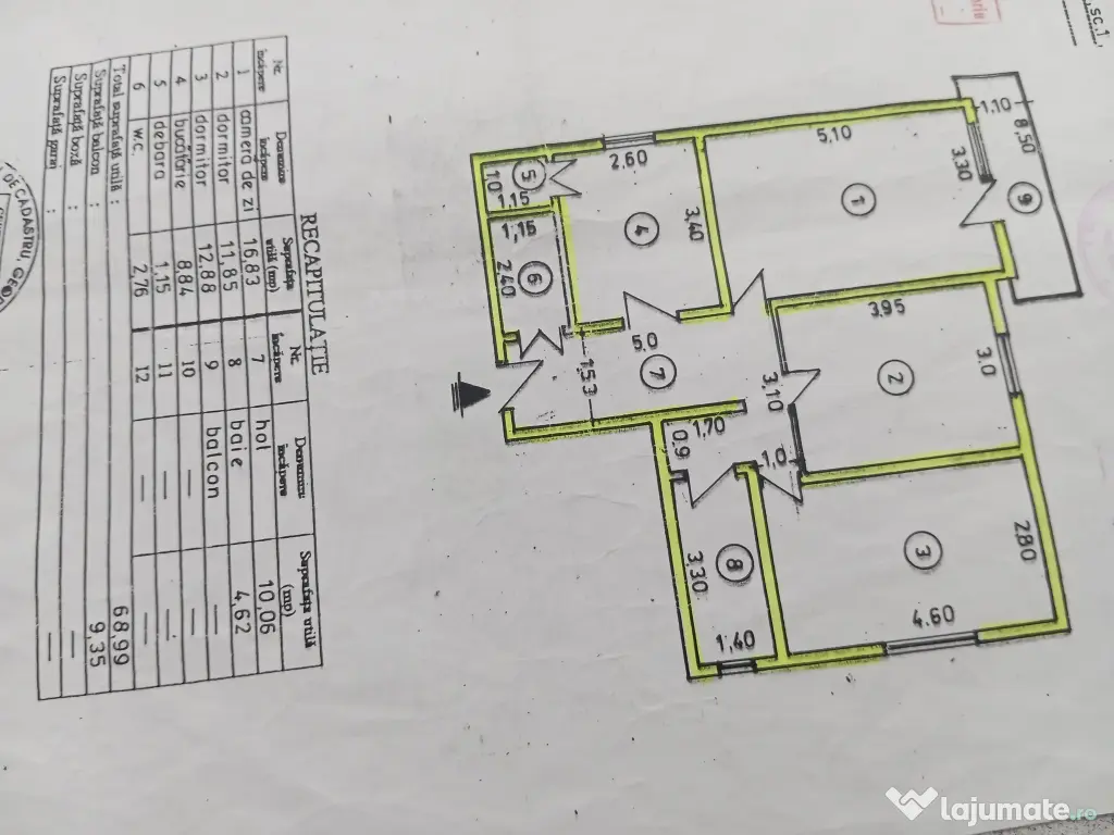 Suprafața 68,99 mp + balcon 9 ,35 mp