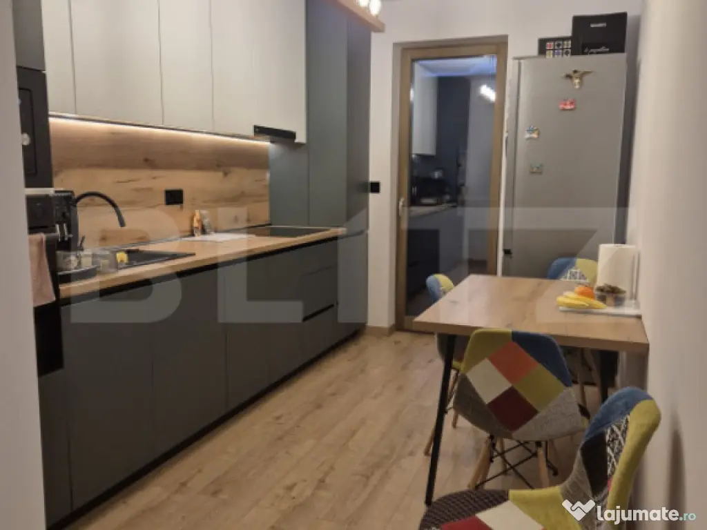 Blitz Imobiliare vă prezintă un apartament modern și elegant, cu o suprafață utilă de 62 mp, situat în cartierul Tudor, într-o zonă nouă, liniștită și înconjurată de spații verzi. Amplasat la etajul 8 al unui imobil cu 10 niveluri, apartamentul oferă o priveliște superbă și un confort aparte, ideal pentru cei care apreciază rafinamentul și calitatea. Locuința este complet mobilată și utilată, dotată cu tehnologii de ultimă generație, iar mobilierul modern, realizat pe comandă, îmbină perfect funcționalitatea cu designul contemporan. Cele două balcoane generoase extind spațiul de relaxare și oferă o oază de aer curat și lumină naturală. Zona este una deosebit de plăcută – liniște, verdeață, acces rapid la magazine, mijloace de transport și alte puncte de interes urban. Un apartament complet, modern, pregătit pentru mutare imediată, perfect atât pentru locuit, cât și ca investiție într-o zonă în continuă dezvoltare. Vă invităm să îl descoperiți alături de Blitz Imobiliare! Cod ofertă / ID BLITZ: P156429 Id intern: P156429 Confort: 1 Tip imobil: Bloc de apartamente Număr Băi: 1