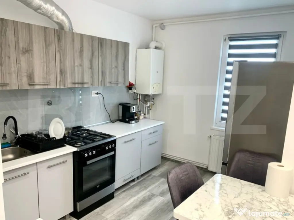 Blitz Imobiliare, vă oferă spre vânzare, în zona Unirii, apartament cu o suprafață utilă de 53 m2, la etajul 3/4. Locuința este compusă din două camere mobilate modern, bucătărie mobilată/utilată cu o cămară în anexă, baie spațioasă cu geam. Camerele au balcoane închise cu geamuri termopan, având o suprafață totală de 7 m2. Locuința dispune de centrală proprie, ușă de metal, interfon la intrare în bloc, boxă proprie amenajată în pivniță. Apartamentul mai are în dotare o parcare acoperită. Imobilul este situat în apropierea zonelor de interes: farmacii, școli, grădiniță, magazine, piață, stații de autobuz. Imobilul este renovat complet, ocupabil imediat. Cod ofertă / ID BLITZ: P143942 Id intern: P143942 Confort: 1 Tip imobil: Bloc de apartamente Număr Băi: 1 Nr. locuri parcare: 1
