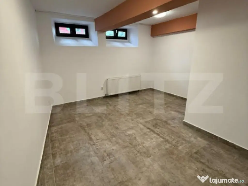 Blitz iti propune apartament spațios, situat la demisolul unei clădiri din zona centrală a Clujului, perfect pentru birouri, cabinete sau alte activități comerciale. Datorită poziționării excelente, acest spațiu oferă acces facil la punctele de interes și beneficiază de o compartimentare optimă pentru desfășurarea activităților profesionale. Caracteristici principale: - Suprafață utilă: 65 mp - Compartimentare: 2 camere luminoase și bine proporționate - Finisaje: gresie de calitate superioară în toate încăperile - Confort termic: centrală proprie pentru încălzire eficientă - Climatizare: aer condiționat și dezumidificator profesional - Depozitare: boxă dedicată pentru depozitare - Spații comune: acces la curte comună și cotă parte din podul clădirii Proprietatea nu este eligibilă pentru achiziție prin credit ipotecar. O oportunitate excelentă pentru cei care caută un spațiu profesional într-o zonă centrală. Cod ofertă / ID BLITZ: P144513 Id intern: P144513 Confort: 1 Tip imobil: Bloc de apartamente Număr Băi: 1