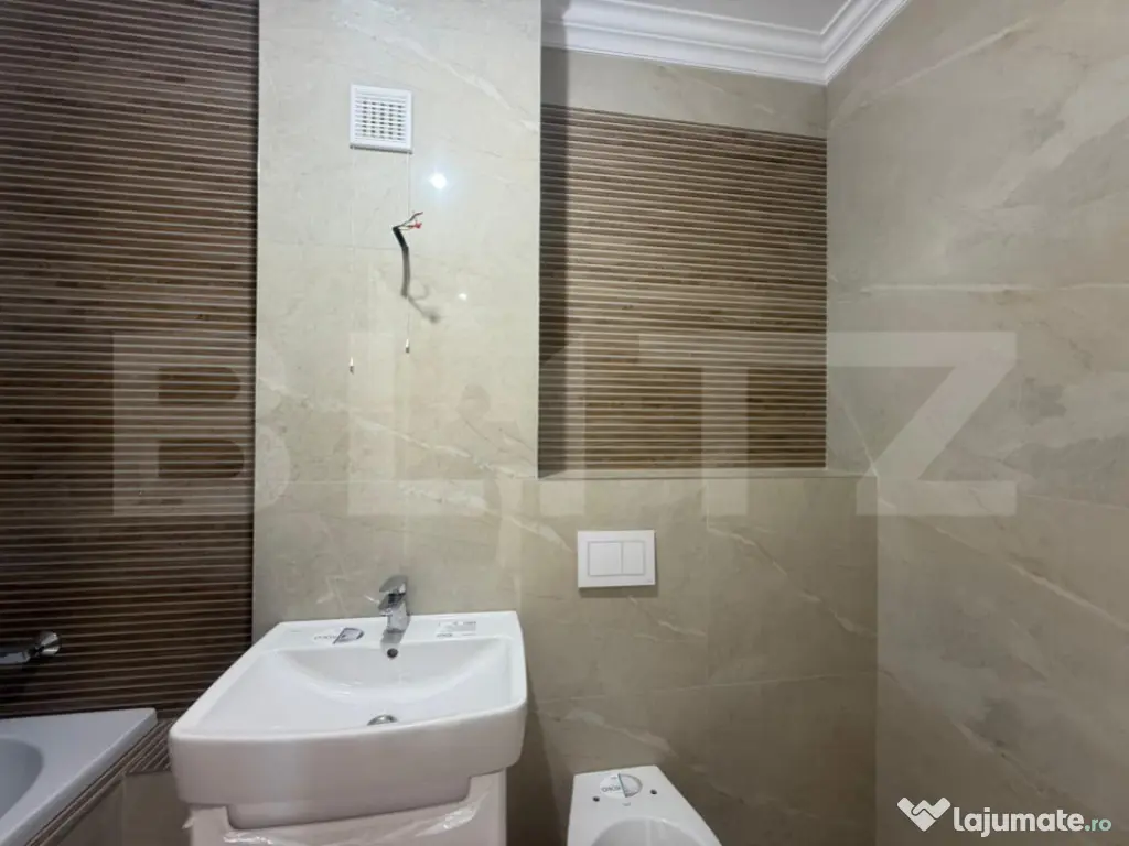 BLITZ vă propune spre vânzare un apartament de 3 camere, finisat lux, în zona Torontalului – parcare inclusă! Blitz vă oferă spre vânzare un apartament modern cu 3 camere, situat într-un imobil nou din zona Torontalului, cu o suprafață utilă de 55 mp și loc de parcare inclus în preț. Proprietatea se află la etajul 1 al unui bloc dotat cu 2 lifturi, fiind ideală pentru cei care caută confort, stil și acces facil în oraș. Caracteristici premium: Încălzire în pardoseală pentru un confort termic superior Climatizare inclusă Gresie italiană de mari dimensiuni (270x120) Uși interioare Prüm – design și calitate superioară Geamuri exologice tripan – eficiență energetică și izolare fonică excelentă Iluminat ambiental cu LED Baie dotată cu cadă Apartamentul este ideal pentru locuit sau ca investiție, fiind amplasat într-o zonă în plină dezvoltare, aproape de centre comerciale, mijloace de transport și alte facilități urbane. Cod ofertă / ID BLITZ: P148565 Id intern: P148565 Confort: 1 Tip imobil: Bloc de apartamente Număr Băi: 1 Nr. locuri parcare: 1