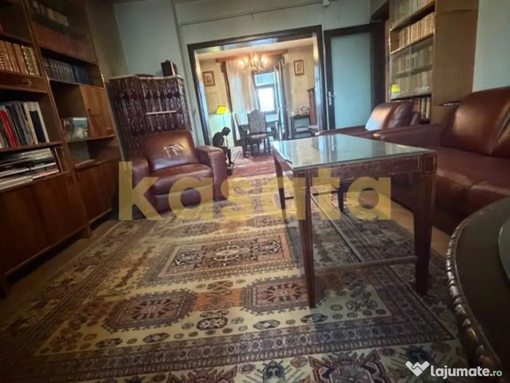 Se oferă spre vânzare un apartament cu 3 camere, situat în zona centrală a Capitalei, între Piața Romană și Piața Victoriei, într-un imobil construit în anul 1968. Clădirea are un regim restrâns de locuire, cu doar 12 apartamente, oferind un plus de intimitate și liniște. Intrarea în imobil este retrasă de la stradă și precedată de o curte interioară amenajată, care creează un ambient plăcut și aerisit. Apartamentul este compus din living generos, zonă de dining separată și dormitor spațios, baie și două balcoane. Proprietatea beneficiază de boxă la subsol și de garaj în curtea interioară, un avantaj important pentru zona centrală. Compartimentarea este practică, cu spații bine delimitate și lumină naturală pe tot parcursul zilei. Locuința necesită renovare completă, oferind posibilitatea reamenajării și personalizării în funcție de preferințele viitorului proprietar. Stațiile de metrou Piața Victoriei și Piața Romană se află la distanță scurtă, iar zona este foarte bine conectată prin mijloace de transport în comun. Poziționarea permite acces facil atât către centrul orașului, cât și către zona de business din Pipera și către principalele centre comerciale din nordul Capitalei. Confort: 1 Tip imobil: Bloc de apartamente Număr Băi: 1 Posibilitate parcare: Nu