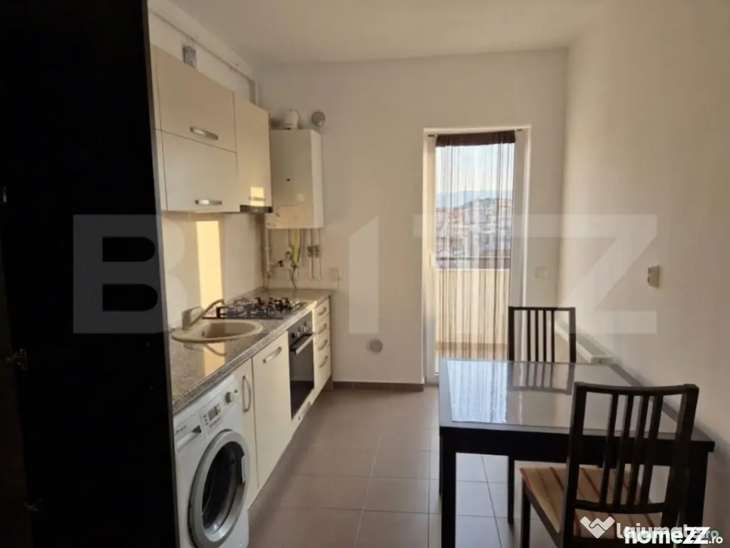 Blitz Imobiliare vă propune spre închiriere un apartament cu 2 camere, decomandat, situat într-un bloc nou, pe strada Corneliu Coposu, la doar 20 de minute de centrul orașului, în imediata apropiere a Gării Cluj-Napoca. Apartamentul este complet mobilat și utilat modern, gata de mutare, beneficiind de centrală termică proprie, finisaje de calitate și dotări complete: aer condiționat, frigider, mașină de spălat rufe, plită pe gaz, cuptor electric, hotă, Smart TV, aspirator și mobilier modern. Locuința are orientare sudică, ceea ce îi oferă un plus de lumină naturală și un confort termic sporit pe tot parcursul anului. Balconul generos completează perfect apartamentul, oferind o priveliște superbă asupra orașului. În preț este inclus și un loc de parcare subteran, un real avantaj indiferent de sezon. Complexul dispune de curte interioară privată și loc de joacă pentru copii, asigurând un mediu sigur și plăcut pentru întreaga familie. Cod ofertă / ID BLITZ: P163698 Id intern: P163698 Confort: 1 Tip imobil: Bloc de apartamente Număr Băi: 1 Nr. locuri parcare: 1