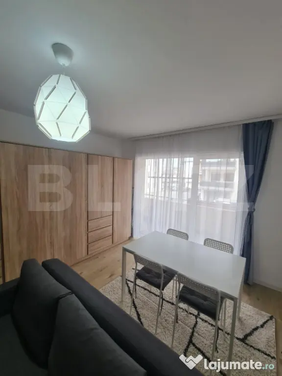 Apartamentul este pet friendly, situat la etajul 1 al unui bloc din caramida izolat termic la exterior, dispune de aer conditionat, centrala termica proprie, tamplarie PVC cu geam termopan si este compus din: hol, living, buvatarie, dormitor, baie si balcon. Se percepe o garantie de 350 euro. PEntru mai multe detalii nu ezitati sa ne contactati.