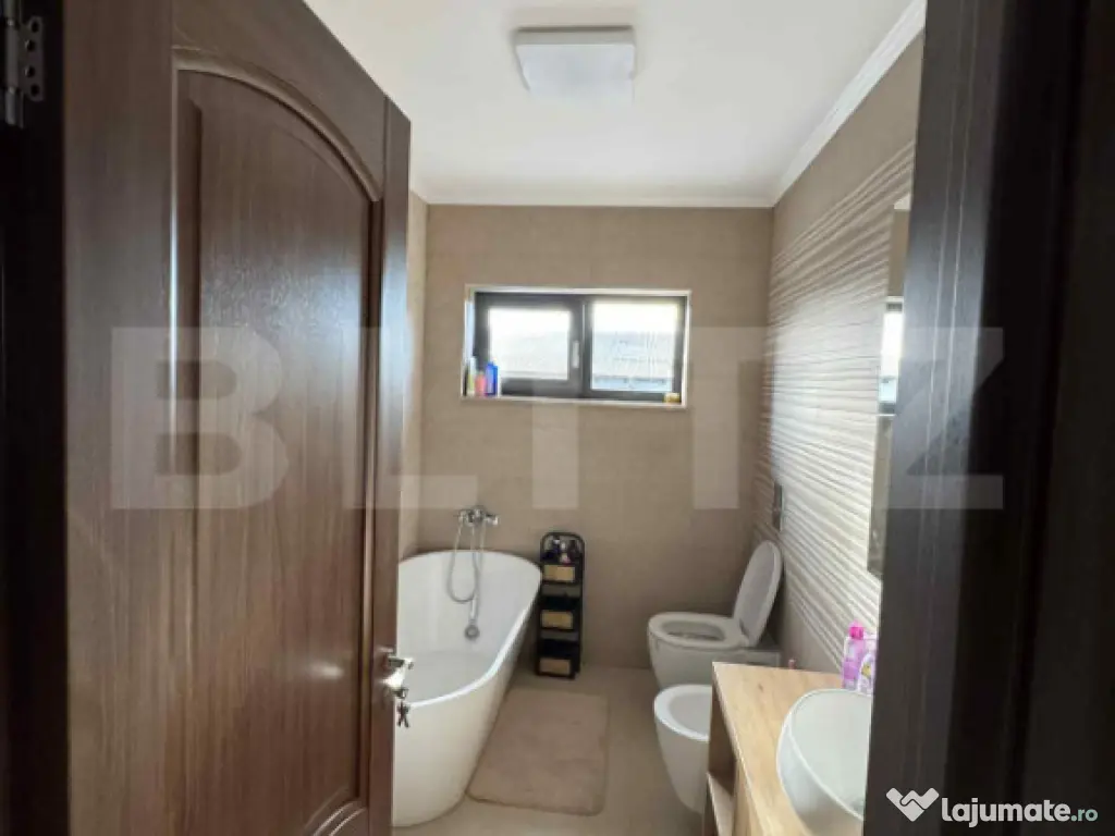 Blitz va oferă spre vânzare un apartament modern cu 3 camere, având o suprafață utilă de 100 mp, situat într-un ansamblu rezidențial recent construit, într-o zonă liniștită și bine conectată la facilitățile urbane. Locuința este dispusă pe două niveluri și se remarcă printr-o compartimentare funcțională și echilibrată, gândită pentru confort și intimitate: -Parter: living spațios și luminos, baie de serviciu, hol generos și bucătărie modernă; -Etaj: două dormitoare confortabile, baie principală și dressing spațios. Apartamentul beneficiază de finisaje de calitate, spații bine iluminate natural și acces la o curte comună amenajată. Ansamblul rezidențial oferă un mediu sigur, curat și modern, cu acces controlat și vecinătate selectă. Proprietatea reprezintă o alegere ideală pentru familii sau persoane care își doresc un spațiu generos, contemporan, într-o comunitate rezidențială bine organizată, cu toate avantajele confortului urban. Cod ofertă / ID BLITZ: P156811 Id intern: P156811 Confort: 1 Tip imobil: Bloc de apartamente Număr Băi: 2 Nr. locuri parcare: 1