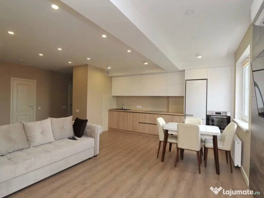 Va oferim spre inchiriere un apartament compartimentat in hol, bucatarie cu living, dormitor baie plus un balcon situat la etajul 4 al unui imobil de 6 etaje cu lift. Apartamentul este finisat cu parchet, gresie, faianta, termopan, usa metalica si centrala, dispunand de o suprafata utila de 50 mp. Se inchiriaza mobilat si utilat si cu un loc de parcare Confort: 1 Tip imobil: Bloc de apartamente