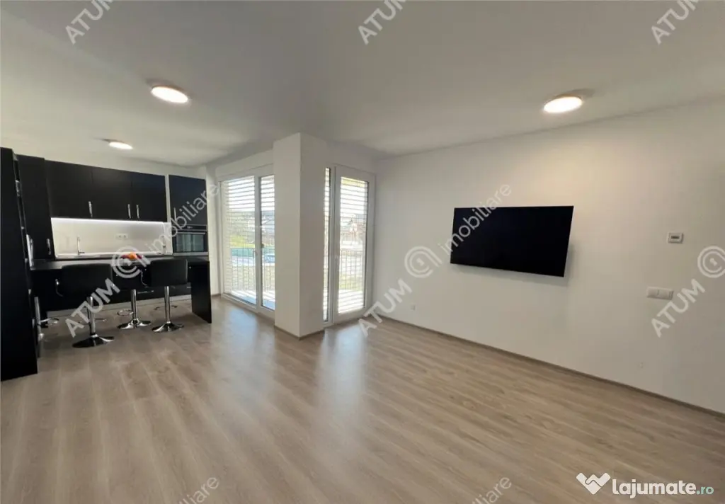 De vanzare apartament premium in conformitate cu standardele nZEB ( consum de energie aproape zero ), de 2 camere cu terasa si loc de parcare subteran, pozitionat de la etajul 2, orientat spre SUD-VEST, localizat in zona Arhitectilor. Apartamentul se afla intr-un imobil finalizat in anul 2024 care beneficiaza de caracteristici tehnice esentiale unui imobil pasiv. Blocul detine panourile fotovoltaice care furnizeaza energia electrica necesara pentru functionarea pompele de caldura, furnizarea apei calde de consum din locuinte, parcarea subterana in care accesul se face prin intermediul liftului auto, iluminatul pe casa scarii, iluminatul exterior al imobilului si al intregii zone verzi. Din punct de vedere structural imobil este edificat pe structura de rezistenta tip cadru din beton armat cu grinzi din beton armat, aceleasi materiale fiind utilizate si la peretii de delimitare a apartamentelor ( 30 cm ) cat si la cei de compartimentare, atuu din prisma insonorizarii cat si a izolarii fonice. Imobilul beneficiaza de termosistem exterior din polistiren grafitat de 15 cm, acoperit cu tencuiala decorativa si video interfon la intrarea in bloc. Apartamentul are 50.90 mp utili, acesta este compus dintr-un hol de acces 4,90 mp unde poate fi amenajata zona de primire cu pantofar si cuier, camera de zi tip open space cu bucataria de 27.70 mp care prezinta posibilitate de separare, dormitorul de 13,20 mp si baia de 5.10 mp. Pe langa suprafata utila a locuintei aceasta detine si un balcon de 9.70 mp utili in care accesul se face atat din camera de zi cat si din bucatarie. Parcarea se realizeaza pe propriul loc de parcare in parcarea subterana. Apartamentul detine dotari moderne printre care sunt: confortul termic este asigurat de catre sistemul de incazire si racire montat in pardoseala marca Uponor iar temperatura este controlata cu ajutorul termostatelor individuale montate in fiecare incapere, jaluzele actionate electric incastrate in structura blocului, tamplarie PVC marca Salamander Green Evolution profilul de 79 mm cu geam termopan cu 3 foi de sticla LOW-E, usa metalica de acces anti-efractie, video-interfon. Pe langa dotarile mentionate apartamentul se preda finisat la cheie si partial mobilat cu: pardoseli placate cu parchet din lemn stratificat, gresie in baie iar peretii baii placati cu faianta, obiecte sanitare Geberit si baterii Grohe, usi interioare din lemn, prize si intrerupatoare. Din punct de vedere al mobilei, locuinta se va preda partial mobilata si utilata cu mobilier de bucatarie realizat pe comanda din MDF cu electrocasnice incastrate ( hota, plita pe inductie, cuptor electric si frigider ), baia complet amenajata cu obiecte sanitare si mobilierul specific. Terenul liber aflat in fata cat si in lateralul blocului insumeaza 2000 mp care va ramane zona verde amenajata cu cale de acces pietonala si cale de acces auto pentru a ajunge la liftul auto spre parcarea subterana. Valoarea de achizitie este de 165.700 euro negociabil, acesta poate fi achizitionat si prin accesarea unui credit bancar. ID intern: 3378. Confort: 1 Tip imobil: Bloc de apartamente Număr Băi: 1 Posibilitate parcare: Da Nr. locuri parcare: 1