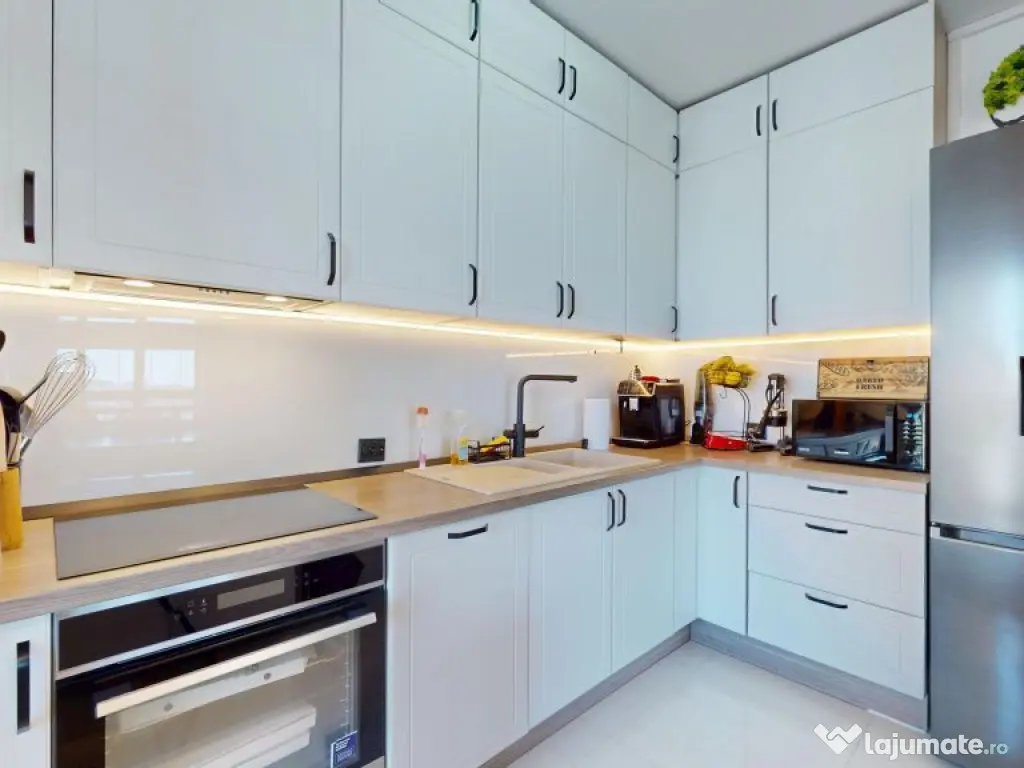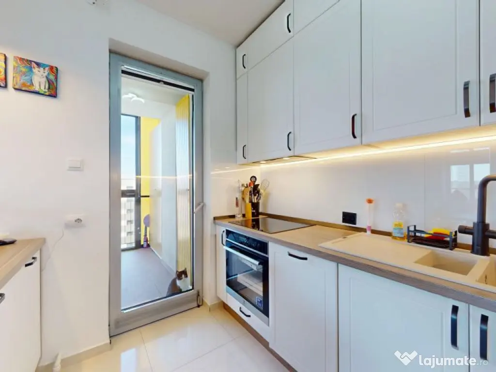 Apartament exclusivist 2 camere + terasă 24 mp – Asmita Gardens Un apartament în care designul, funcționalitatea și atenția la detalii se îmbină perfect – pregătit pentru un stil de viață modern, fără investiții suplimentare. Situat în complexul Asmita Gardens, pe Splaiul Unirii, la etajul 10, acest apartament de 2 camere impresionează prin terasa spectaculoasă de 24 mp, finisajele premium și compartimentarea inteligentă. Suprafețe: 54 mp utili 24 mp terasă închisă cu sticlă securizată Renovat complet în 2024 – totul nou, ales cu atenție la calitate și estetică Compartimentare & dotări premium Hol de intrare Dulap cu oglinzi (spațiu generos de depozitare) Cuier haine + suport chei Sisteme inteligente pentru depozitare încălțăminte Baie Mobilier complet de depozitare (sub și deasupra chiuvetei + zonă WC) Rafturi suplimentare Mașină de spălat + uscător Electrolux Dormitor Pat matrimonial 160x200 cu saltea Dormeo Noptiere smart Dressing pe toată lungimea peretelui Măsuță de machiaj cu oglindă Living Canapea extensibilă, cu spații de depozitare și stofă pet friendly Comodă TV din MDF vopsit, frezat Elemente decorative și spații de depozitare integrate Masă de cafea extensibilă → masă pentru 8 persoane Bucătărie Mobilier premium din MDF vopsit, frezat Plită cu inducție + hotă inteligentă Electrolux (pornire automată & reglaj intensitate) Mașină de spălat vase încorporată (45 cm) Beko Combină frigorifică Samsung Cuptor cu microunde Samsung Insulă / bar multifuncțional (masă + spațiu depozitare) Scaune de bar Terasă / balcon (24 mp) Închidere completă cu sticlă securizată, sistem culisant Zonă bucătărie: dulapuri MDF (depozitare + scule) Zonă relaxare: masă din sticlă + 2 scaune extensibile Zonă dormitor: dulap generos în 3 corpuri (inclusiv spațiu pentru umerașe) Avantaje cheie Etaj superior – lumină naturală și vedere panoramică Compartimentare excelentă + multiple spații de depozitare Apartament complet mobilat și utilat premium Ideal pentru locuire imediată sau investiție high-end Asmita Gardens – Splaiul Unirii Confort: 1 Tip imobil: Bloc de apartamente Număr Băi: 1 Posibilitate parcare: Nu
