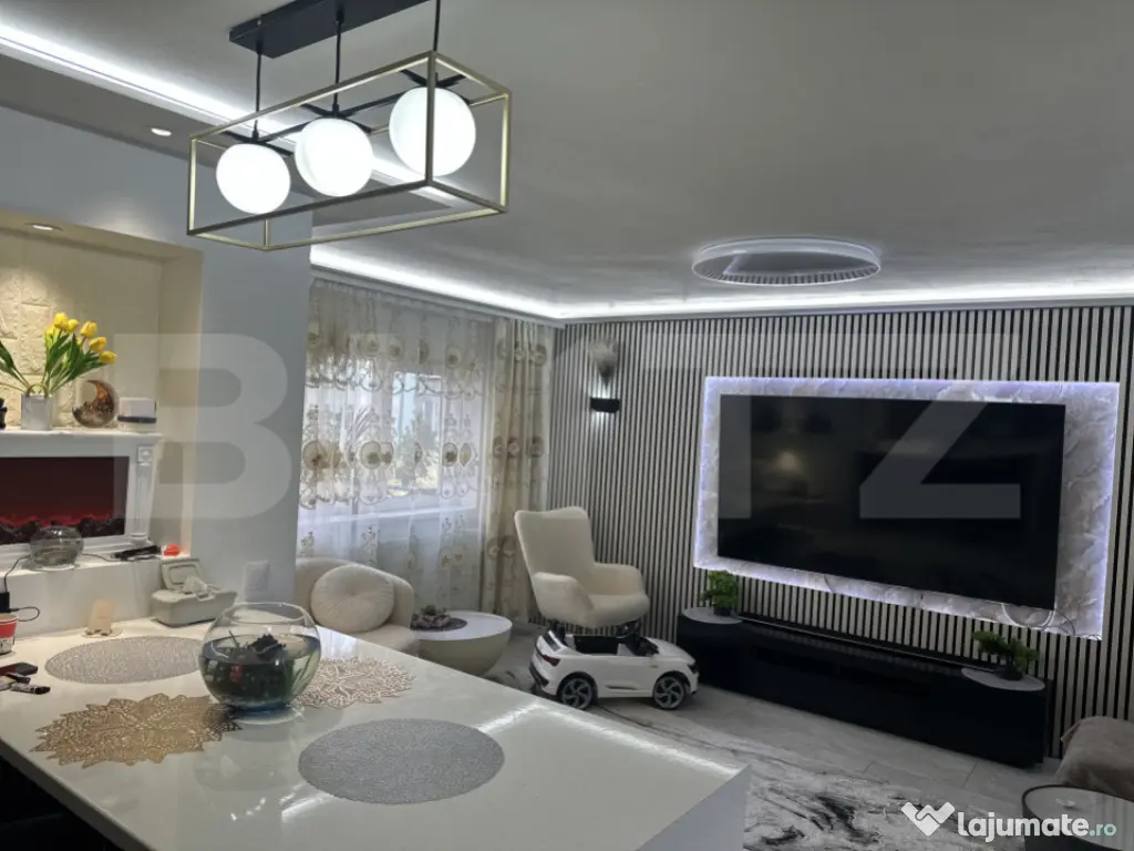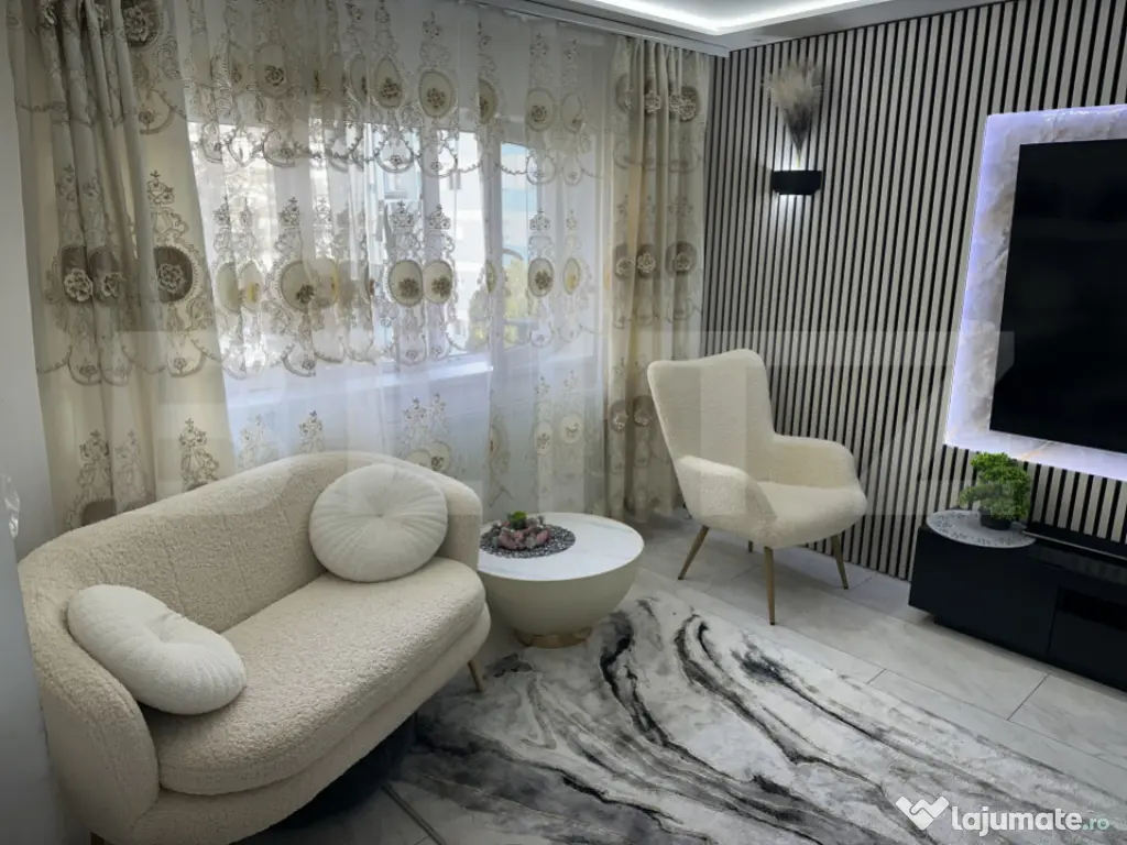 Descoperă un apartament deosebit, cu 4 camere, situat la etajul 2 din 4, care îmbină perfect eleganța cu funcționalitatea. Cu o compartimentare decomandată inteligent gândită, locuința te întâmpină cu un living generos open-space, armonios integrat cu bucătăria – spațiul ideal pentru relaxare și socializare. Proprietatea dispune de 2 dormitoare confortabile, un dressing bine organizat și o baie impresionantă, de dimensiuni mari, dotată cu jacuzzi – un adevărat refugiu de relaxare chiar la tine acasă. Balconul completează perfect acest tablou, oferind un spațiu suplimentar pentru momentele de liniște. Apartamentul se vinde complet mobilat și utilat, cu electrocasnice moderne, majoritatea aflate încă în garanție, astfel încât te poți muta imediat fără griji. Designul interior este unul rar întâlnit, atent ales pentru a oferi un stil de viață confortabil și exclusivist. Fiecare detaliu contribuie la crearea unei atmosfere primitoare și rafinate. Un apartament care merită cu adevărat văzut! Cod ofertă / ID BLITZ: P167722 Id intern: P167722 Confort: 1 Tip imobil: Bloc de apartamente Număr Băi: 1