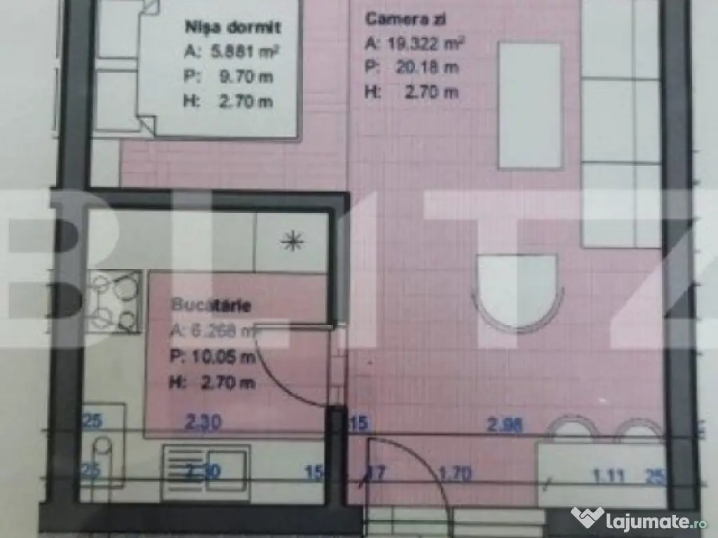 Blitz ofera spre vanzare un apartament cu o camera, situat intr-un imobil nou. Este pozitionat, la etajul 3, intr-un bloc cu regim de inaltime D+P+3E. Dispune de o suprafata utila de 37 mp, iar compartimentarea este semidecomandata, gandita astfel: bucatarie inchisa, nisa de dormit cu camera de zi, o baie, hol si un balcon. Se preda la stadiul de finisat cu baia utilata. Optional se poate achizitiona un loc de parcare subteran 3500 euro Cod ofertă / ID BLITZ: P1952 Id intern: P1952 Confort: 1 Tip imobil: Bloc de apartamente