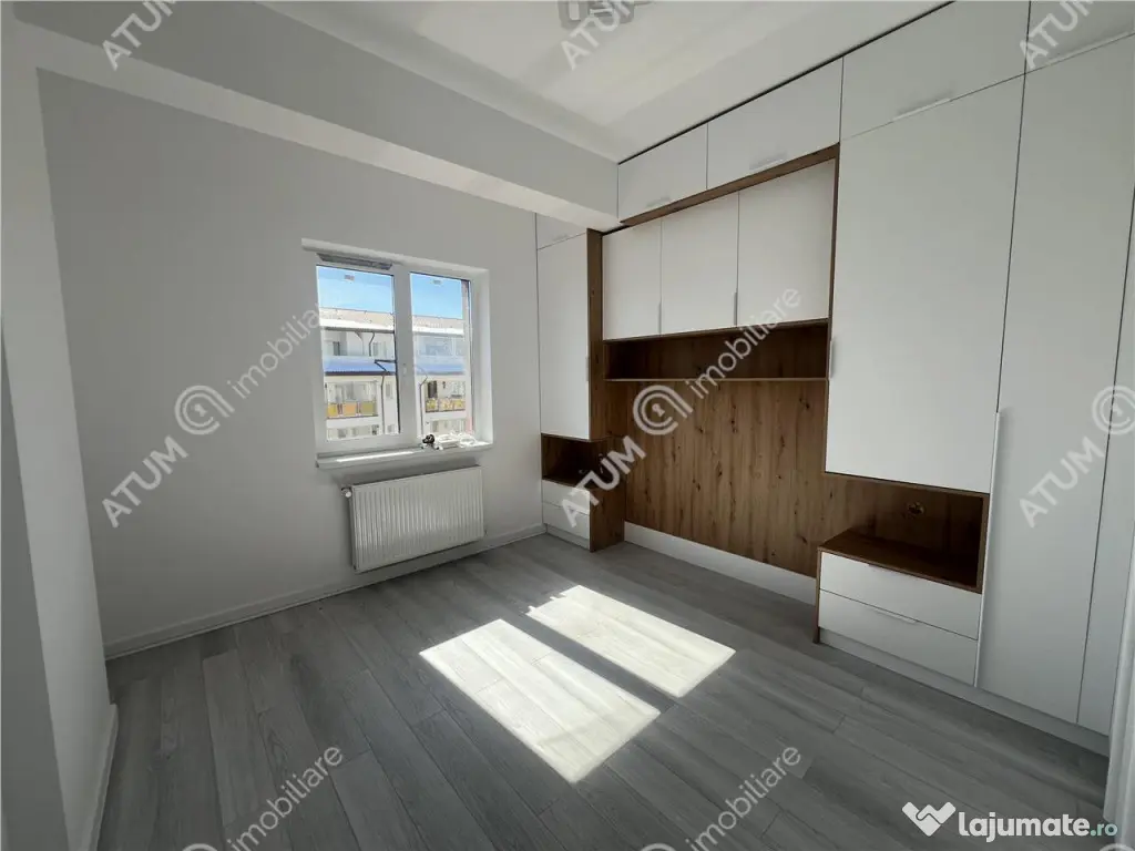 Comision 0 la achizitie! Va propunem spre vanzare un apartament cu 2 camere decomandate si 2 balcoane, pozitionat la etajul intermediar 4 al unui imobil constructie noua 2023 si dotat cu lift, situat la aproximativ 5 minute de mers pe jos fata de Piata Agroalimentara Rahova din Sibiu. Apartamentul are 62.70 mp utili si este alcatuit din camera de zi 20.00 mp cu acces in balconul tip terasa de 9.20 mp, dormitor de 13.90 mp, bucataria separata de 11 mp, baia generoasa de 7.80 mp prevazuta pentru cada si dotata cu aerisire naturala din care se face accesul in balconul propriu de 4.20 mp si holul spatios de 10 mp cu multiple spatii dedicate depozitarii precum si pentru pozitionarea cuierului cu pantofar.. Imobilul dispune de locuri proprii de parcare supraterane si subterane. Locuinta se preda la stadiul de cheie, iar amenajarile interioare pot fi alese de dumneavoastra in limita unui buget: Apartamentul se va preda la stadiul de alb cu finisaje standard precum: - Usa metalica antiefractie de acces placata cu panou MDF marca Porta-Doors; - Tamplarie PVC 7 camere cu geam termopan LOW-E trei foi de sticla, glafuri interioare si exterioare; - Instalatie termica cu centrala termica, calorifere de otel montate pe pozitie, repartitor/distribuitori si tevi multristrat PEX-AL-PE de la distribuitor la calorifere; - Pereti interiori tencuiti ( tencuiala pe baza de var-ciment ), gletuiti si zugraviti in lavabila alba; - Sape de egalizare elicopterizate; - Interfon functional; - Instalatii electrice cu tablou general individual si sigurante pentru consumatorii de putere, doze, dulii, prize si intrerupatoare montate marca Schneider Sedna, instalatii pentru curenti slabi ( TV, Telefon, Internet ); - Racorduri apa-canal in baie si bucatarie; - Racord gaz metan in bucatarie; - Contorizari individuale si contoare montate pentru Gaz, Curent si Apa; - Balcon inchis cu parapet din teava rectangulara si placat cu gresie antiderapanta de exterior; Optional apartamentul se poate preda la stadiul de cheie cu gresie si faianta icirc;n bucatarie, gresie si faianta icirc;n bai, obiecte sanitare ( cabina de dus/cada, lavoar, vas wc, baterii cada/lavoar ), parchet laminat, usi de interior marca Porta Doors, corpuri de iluminat intr-un buget prestabilit. Spatiile comune interioare sunt complet finisate, casa scarii este generoasa, dispune de trei ascensoare electrice de ultima generatie cu functionare silentioasa, acces securizat, scarii placate cu granit, mana curenta din teava rectangulara, plafoniere cu senzori de miscare si zugraveli in lavabila alba. Spatiile comune exterioare si interioare vor fi iluminate cu stalpi de iluminat si corpuri de iluminat cu senzori de miscare, iar in curtea interioara va fi amenajat un loc privat de joaca pentru copii, amenajat cu nisip, topogan, leagane si banci. Valoarea de achizitionare a apartamentului in urma unui avans de 15% din suma este de 124.000 euro, acesta se poate achizitiona siprin credit bancar. ID intern: 1856. Confort: 1 Tip imobil: Bloc de apartamente Număr Băi: 1