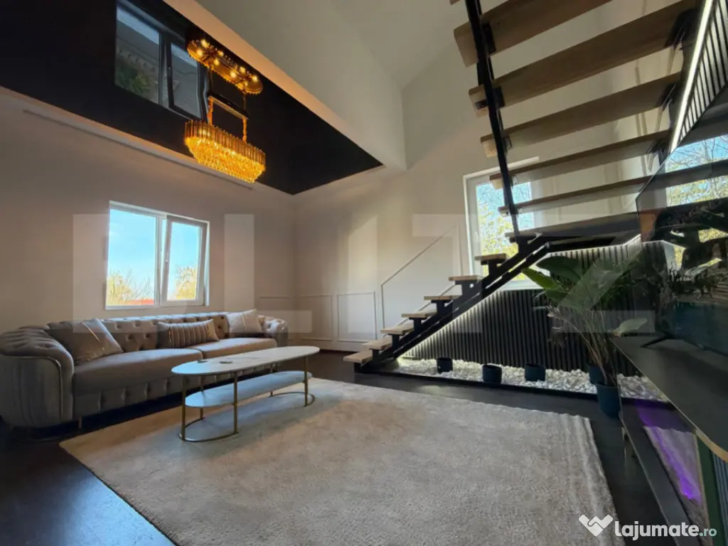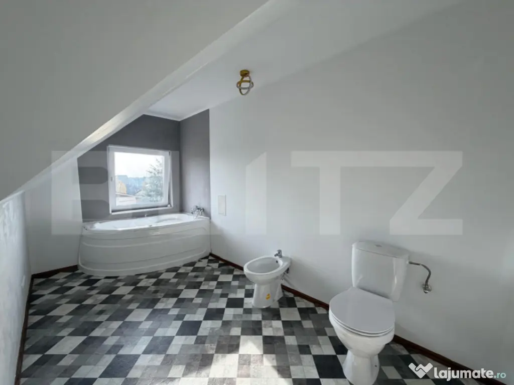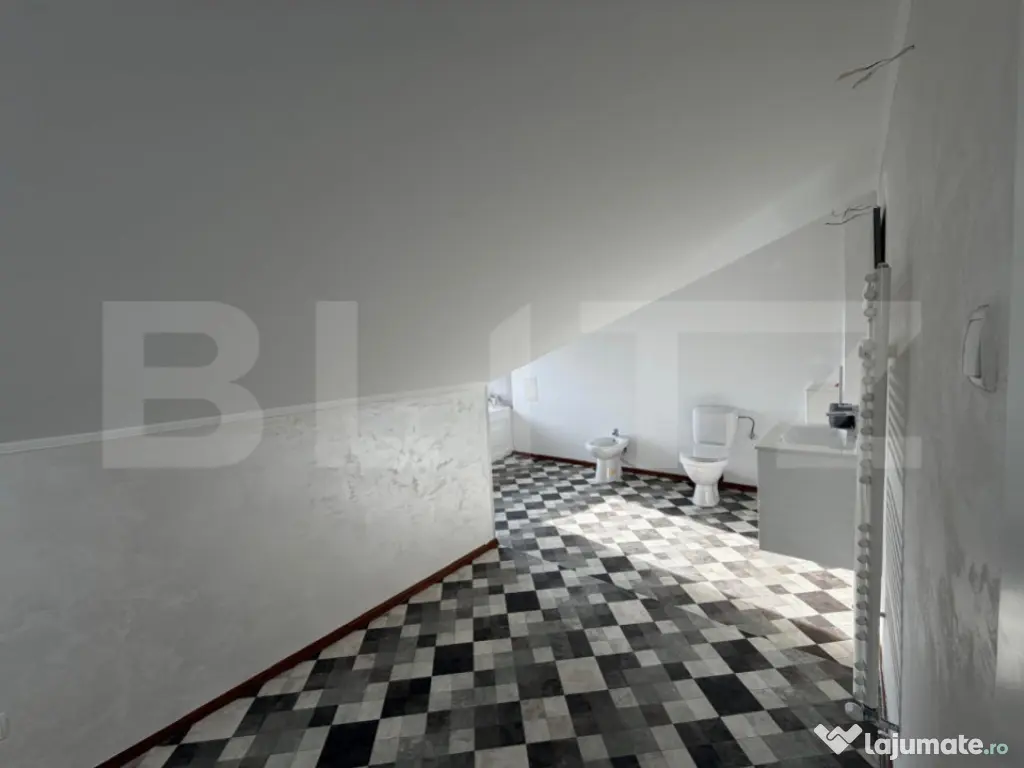 ???? BLITZ vă propune spre vânzare un apartament spațios cu 3 camere în Dumbrăvița Descoperiți confortul unui apartament elegant, situat într-una dintre cele mai liniștite și căutate zone din Dumbrăvița. Ideal pentru o familie sau pentru cei care apreciază spațiul, lumina naturală și liniștea, această proprietate oferă toate avantajele unei locuințe moderne aproape de Timișoara. ???? Localizare și detalii generale Localitate: Dumbrăvița, cu acces facil către Timișoara Tip imobil: Casă cu regim de înălțime P+2E+M Etaj: 2 + mansardă An construcție: 2006 Structură: beton armat, zidărie cărămidă Porotherm Suprafață construită: 146 mp Suprafață utilă: 116 mp ???? Compartimentare funcțională Etajul 2: Living generos Bucătărie complet mobilată și utilată Hol Baie cu cabină de duș Mansarda: Dormitor matrimonial Dormitor secundar + dressing Baie spațioasă cu cadă și hidromasaj ✨ Finisaje și dotări Ușă de intrare: metalică Uși interioare: cu balamale ascunse și broască magnetică, calitate premium Tâmplărie: PVC cu geam termopan Pardoseli: parchet, gresie, linoleum Încălzire: centrală proprie, distribuție prin calorifere Apartamentul se vinde complet mobilat, incluzând: Bucătărie complet echipată (plită pe gaz, cuptor, hotă, frigider cu congelator incorporat) Living cu canapea, comodă și șemineu decorativ ???? Facilități și zonă Loc de parcare în fața imobilului În apropiere: școli, grădinițe, centre comerciale (Lidl, Kaufland), farmacii, clinici, transport în comun și zone de recreere ???? Contactează-ne pentru mai multe detalii și programarea unei vizionări! BLITZ – partenerul tău de încredere în tranzacții imobiliare. Cod ofertă / ID BLITZ: P157951 Id intern: P157951 Confort: 1 Tip imobil: Casă/Vilă Număr Băi: 2 Nr. locuri parcare: 1
