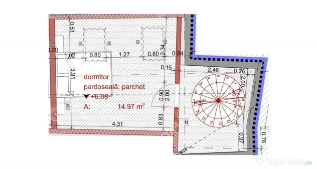 -Pardoseala placata cu parchet din lemn triplu stratificat si gresie iar peretii baii placati cu faianta,