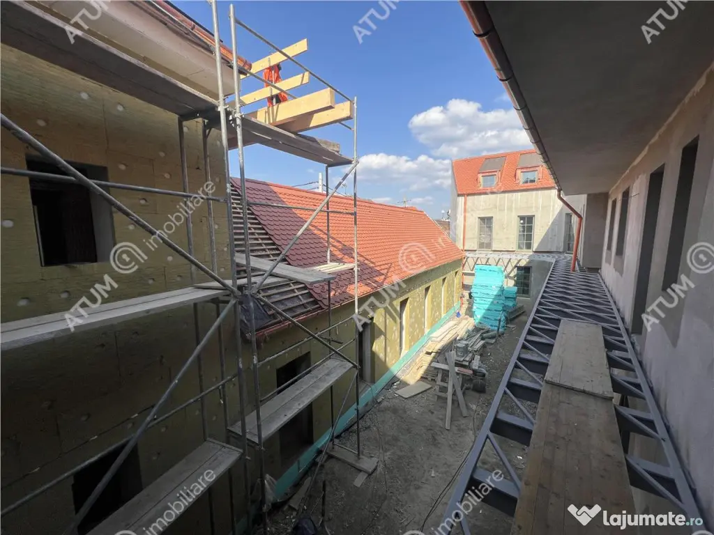 Apartamentul este situat intr-un complex nou de 11 apartamente moderne distribuite in 4 corpuri de cladire care din punct de vedere arhitectural imbina armonios cladirile vechi cu arhitectura contemporana. In incinta complexului exista si o curte interioare frumos amenajata cu dale si zone verzi decorative cat si alte spatii comune exterioare destinate locatarilor.