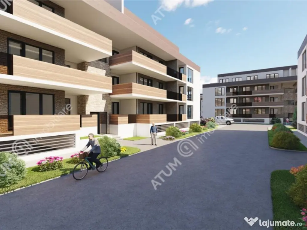 Comision 0 la achizitie! De vanzare in zona Veterani/Terezian din Sibiu, apartament finisat la cheie cu 2 camere decomandate cu balcon si terasa, pozitionat la etajul intermediar 1 din 3 al unul imobil constructie noua 2024 care beneficiaza de parcari private atat pentru locatari cat si pentru vizitatori, lift de ultima generatie, loc de joaca pentru copii, situat in apropierea Prima Shopping. Exteriorul imobilului este realizat din caramida 30 cm placata cu termoizolatie de 10 cm, placari cu piatra aparenta decorativa si profile din lemn, zugraveli cu decorativa siloconata colorata in masa de exterior. Balcoane inchise cu sticla securizata si zidarie, pavate cu gresie antiderapanta si placate cu profile din lemn. Suprafata utila a apartamentului este de 50.95 mp, la intrarea in apartament ragasim un spatiu destinat cuierului cu pantofar, camera de zi 23.50 mp unde poate fi amenajat si locul de luat masa, dormitorul 12.00 mp, bucataria separata de 10.85 mp si baia de 4,60 mp amenajata pentru cada. Separat de suprafata utila apartamentul mai beneficiaza de 2 balcoane, unul de 11.05 mp in care accesul se face atat din camera de zi cat si din dormitor si un altul de 5.75 mp in care accesul se face din bucatarie. Parcarea se realizeaza pe locurile de parcare supraterane disponibile la costul suplimentar de 4.000 euro sau locuri de parcare subterane disponibile la 8.000 euro. Apartamentul se preda la stadiul de cheie, iar daca alegeti sa achizitionati in stadiul actual de constructie aveti posibilitatea de a va personaliza finisajele interioare, conform gusturilor dumneavoastra, intr-un buget convenit. Finisaje standard: - Usa de metal la intrarea icirc;n apartamente placate cu panou MDF; - Pereti tencuiti ( tencuieli pe baza de var-ciment ), gletuiti si zugraviti in lavabila alba; - tamplarie PVC cu 5 camere si 3 foi de sticla ( lowe-float-lowe solar ), feronerie Maco Multimatic si glafuri interior-exterior; - incalzire prin pardoseala ( sistem Innoflow cu distribuitor Inoflou, placa termoizolatoare innotack si banda perimetrala ), centrala termica proprie in condensatie si detector gaz. - sisteme elecrice din cupru trase prin copex cu tablou general si sigurante pentru consumatorii de putere marca Schneider. - Instalatii pentru curentii slabi Internet, Telefon, TV. - Racorduri apa-canal in bucatarie si bai. - Racord gaz metan la bucatarie; - Rupere termica intre balcon si placa din profil de 10 cm montat la tamplarie si polistirent extrudat. - Instalatii pentru gaz, curent electric si apa, contorizare individuala si contoare montate. Finisaje la alegerea dumneavoastra: gresie si faianta icirc;n bucatarie, gresie si faianta icirc;n bai, obiecte sanitare ( cabina de dus/cada, lavoar, vas wc, baterii cada/lavoar ), parchet laminat, usi de interior, prize si intrerupatoare. Casa scarii dispune de: lift, acces securizat, scarile placate cu granit si gresie antiderapanta, mana curenta din teava rectangulara, plafoniere cu senzori de miscare si zugraveli in lavabila alba. Spatile comune exterioare respectiv curtea complexului dispune de spatii verzi amenajate cu gazon, arbusti si plante decorative, iar inchiderea perimetrala va fi cu gard metalic si gard viu (verde) .Locurile de parcare sunt supraterane, delimitate si pavate cu dale din beton. Aleile pietonale sunt pavate cu dale din beton si delimitate de spatii verzi. In curtea interioara va fi amenajat un loc privat de joaca pentru copii, amenajat cu nisip, topogan, leagane si banci. Pretul de achizitie a locuintei este 84.100 euro, aceasta poate fi achizitionata si prin accesarea unui credit. ID intern: 2225. Confort: 1 Tip imobil: Bloc de apartamente Număr Băi: 1