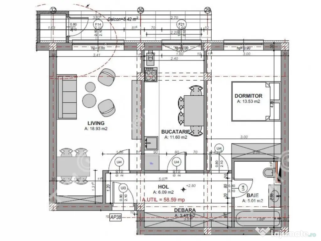 Suprafață utilă (m²)59
