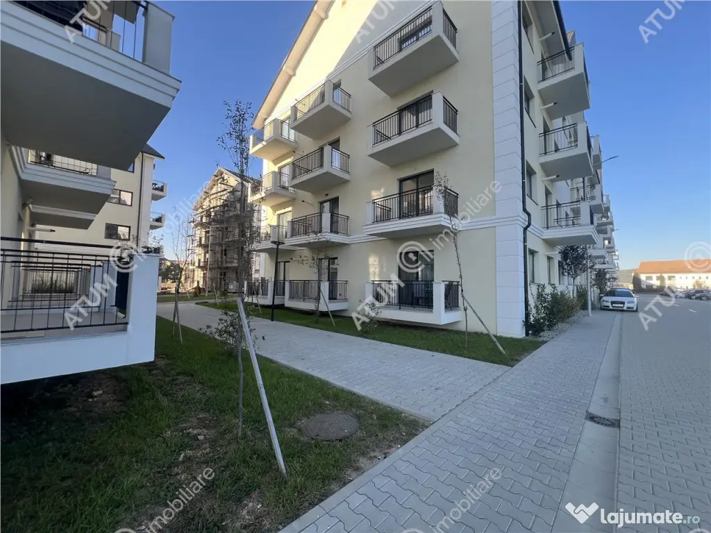 Comision 0! Apartament cu 3 camere decomandate terasa si balcon de vanzare in Selimbar, pozitionat la etajul intermediar 2 din 3 intr-un imobil constructie noua 2024 care beneficiaza de parcari private, lift, loc de joaca pentru copii, situat in apropiere cartierului Vasile Aaron din Sibiu. Locuinta are o suprafata utila de 71 mp si este compartimentat dupa cum urmeaza: living 20.40 mp, bucatarie 7.13 mp, dormitorul matrimonial de 13.93 mp care detine baie proprie de 4.02mp, dormitor de 12.67 mp, baie de 5.17 mp. Separat de suprafata utila acesta dispune de o terasa de 8.91 mp in care accesul se face din living, un balcon de 3.39 mp cu acces din dormitor si o boxa de depozitare in suprafata de 12 mp utili. Exteriorul imobilului este realizat din caramida 30 cm izolata cu polistiren de 10 cm cu densitatea EPS80, placari cu profile decorative din fibrociment si quartz si zugravit cu decorativa siloconata colorata in masa de exterior marca Apla. Balcoane inchise in teava rectangulara si pavate cu gresie antiderapanta. In pretul de achizitie este inclus si locul de parcare care se afla amenajat, delimitat si amplasat in fata imobilului. Apartamentul se preda la stadiul de cheie, iar daca alegeti sa achizitionati in stadiul actual de constructie aveti posibilitatea de a va personaliza finisajele interioare, conform gusturilor dumneavoastra, intr-un buget convenit. Finisaje standard: - Usa de metal la intrarea icirc;n apartamente placate cu panou MDF; - Pereti tencuiti ( tencuieli pe baza de var-ciment marca Adeplast ), gletuiti; - tamplarie PVC marca Rehau culoare alb interior/gri antracid exterior cu 5 camere si 3 foi de sticla ( lowe-float-lowe solar ), feronerie Maco Multimatic si glafuri interior-exterior; - incalzire prin pardoseala ( sistem Innoflow cu distribuitor Inoflou, placa termoizolatoare innotack si banda perimetrala ), centrala termica proprie in condensatie marca Bosh si detector gaz. - sisteme elecrice din cupru trase prin copex cu tablou general si sigurante pentru consumatorii de putere marca Schneider. - Instalatii pentru curentii slabi Internet, Telefon, TV. - Racorduri apa-canal in bucatarie si bai. - Racord gaz metan la bucatarie; - Rupere termica intre balcon si placa din profil de 10 cm montat la tamplarie si polistirent extrudat. - Instalatii pentru gaz, curent electric si apa, contorizare individuala si contoare montate. Imobilul in care se afla locuinta este edificat pe structura de cadre din beton si caramida de 30 cm izolata cu polistiren de 10 cm cu densitatea EPS80, placari cu profile decorative din fibrociment si quartz si zugravit cu decorativa siloconata colorata in masa de exterior marca Apla. Casa scarii dispune de: lift, acces securizat, scarile placate cu granit si gresie antiderapanta, mana curenta din teava rectangulara, plafoniere cu senzori de miscare si zugraveli in lavabila alba. Spatile comune exterioare respectiv curtea complexului dispune de spatii verzi amenajate cu gazon, arbusti si plante decorative, iar inchiderea perimetrala va fi cu gard metalic si gard viu (verde) .Locurile de parcare sunt supraterane, delimitate si pavate cu dale din beton. Aleile pietonale sunt pavate cu dale din beton si delimitate de spatii verzi. In curtea interioara va fi amenajat un loc privat de joaca pentru copii, amenajat cu nisip, topogan, leagane si banci. Pretul de achizitie a locuintei la un avans de 15 % din suma este de 149.000 euro, se poate achizitiona si prin credit ipotecar. ID intern: 2079 Confort: 1 Tip imobil: Bloc de apartamente Număr Băi: 2 Posibilitate parcare: Da Nr. locuri parcare: 1