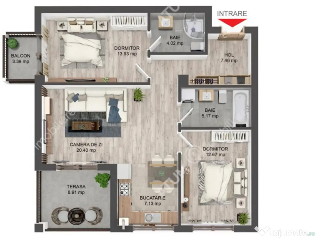 Apartament de 3 camere cu 2 bai si terasa etaj 2 zona Brana