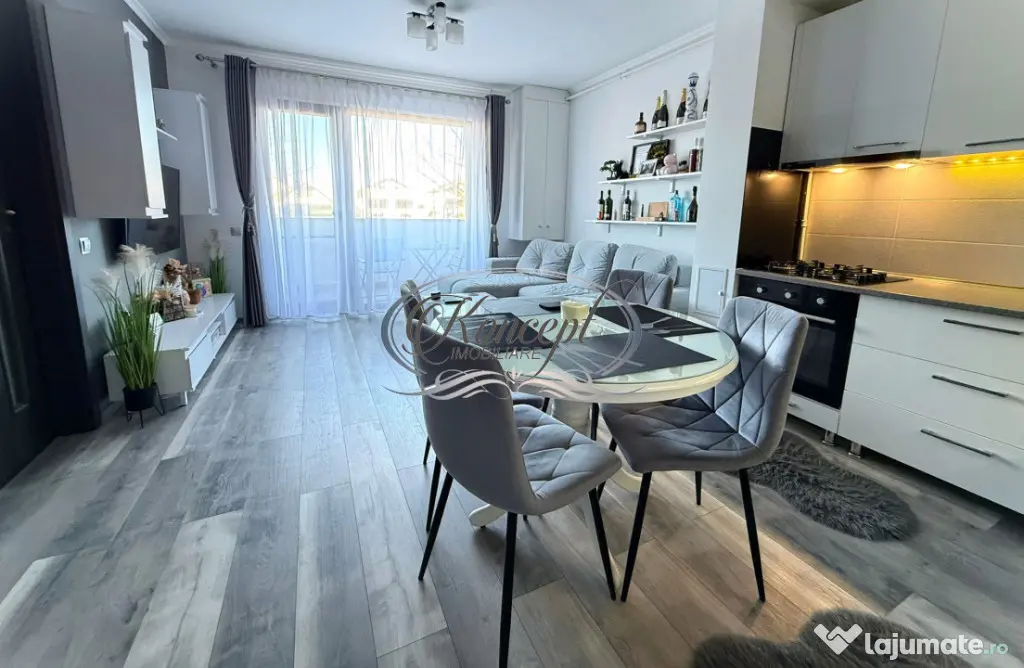 Koncept Imobiliare va ofera spre vanzare un apartament modern cu 2 camere situat in cartierul Europa, pe strada Eugen Ionesco, in ansamblul rezidential Luminia, dispus la parterul inalt al unei cladiri cu 5 niveluri, intr-o zona apreciata pentru liniste, accesibilitate si proximitatea fata de punctele de interes ale orasului. Locuinta are suprafata utila de 39 mp, la care se adauga un balcon generos de 9 mp, fiind compartimentata practic in camera de zi open space cu bucatarie si loc de servit masa, dormitor, baie si balcon. Orientarea avantajoasa, fara constructii in fata, ofera un plus de intimitate si confort, mentinand totodata o atmosfera placuta pe tot parcursul zilei. Apartamentul se vinde complet mobilat si utilat, beneficiind de finisaje de buna calitate, incalzire in pardoseala pentru un confort termic superior si o eficienta sporita a spatiului, precum si de o compartimentare inteligenta, fara spatii pierdute, fiecare zona fiind optim valorificata. Balconul deschis, cu suprafata generoasa, extinde spatiul de locuit si ofera un loc ideal pentru relaxare. Imobilul dispune de lift, spatii verzi amenajate, loc de joaca pentru copii si acces securizat, contribuind la un stil de viata modern si confortabil. Parcarea subterana este disponibila separat, contracost, oferind un avantaj important intr-o zona rezidentiala bine cotata. Datorita compartimentarii eficiente, locatiei bune si facilitatilor oferite de ansamblu, acest apartament este o alegere excelenta atat pentru locuinta personala, cat si pentru investitie, avand potential bun de inchiriere intr-o zona cu cerere constanta. Pentru informatii suplimentare, programarea unei vizionari sau pentru a afla oferta noastra completa va stam la dispozitie telefonic, prin e-mail sau la sediul agentiei noastre, pe str. Aviator Badescu, nr. 19, Cluj-Napoca.