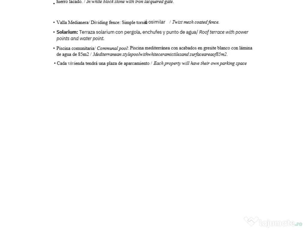 Această reședință face parte dintr-un complex atent planificat, conceput pentru confort, calitate a vieții și o atmosferă mediteraneană relaxată. Apartamentul prezintă o distribuție interioară funcțională cu un living în plan deschis care integrează bucătăria și zona de luat masa, creând un spațiu versatil și primitor, cu lumină naturală și utilizarea eficientă a amenajării disponibile. Accesul direct din living la terasă extinde suprafața utilă în aer liber, făcându-l ideal pentru a lua masa, a se relaxa sau a te bucura de climatul blând de coastă pe tot parcursul anului. Casa include două dormitoare bine proporționate, dulapuri încorporate și două băi complete finisate cu tonuri neutre și materiale durabile care acordă prioritate caracterului practic și rezistenței pe termen lung. Complexul are zone amenajate și o piscină comună spațioasă unde rezidenții se pot relaxa și se pot bucura de un mediu plăcut conceput pentru a îmbunătăți viața de zi cu zi. Toate casele din dezvoltare includ parcare privată și acces independent la zona rezidențială, asigurând atât confort, cât și intimitate pentru rezidenți. Locația oferă acces excelent la plaje, zone comerciale, servicii medicale, supermarketuri și facilități educaționale, făcându-l potrivit pentru locuințe permanente, precum și pentru o a doua casă.