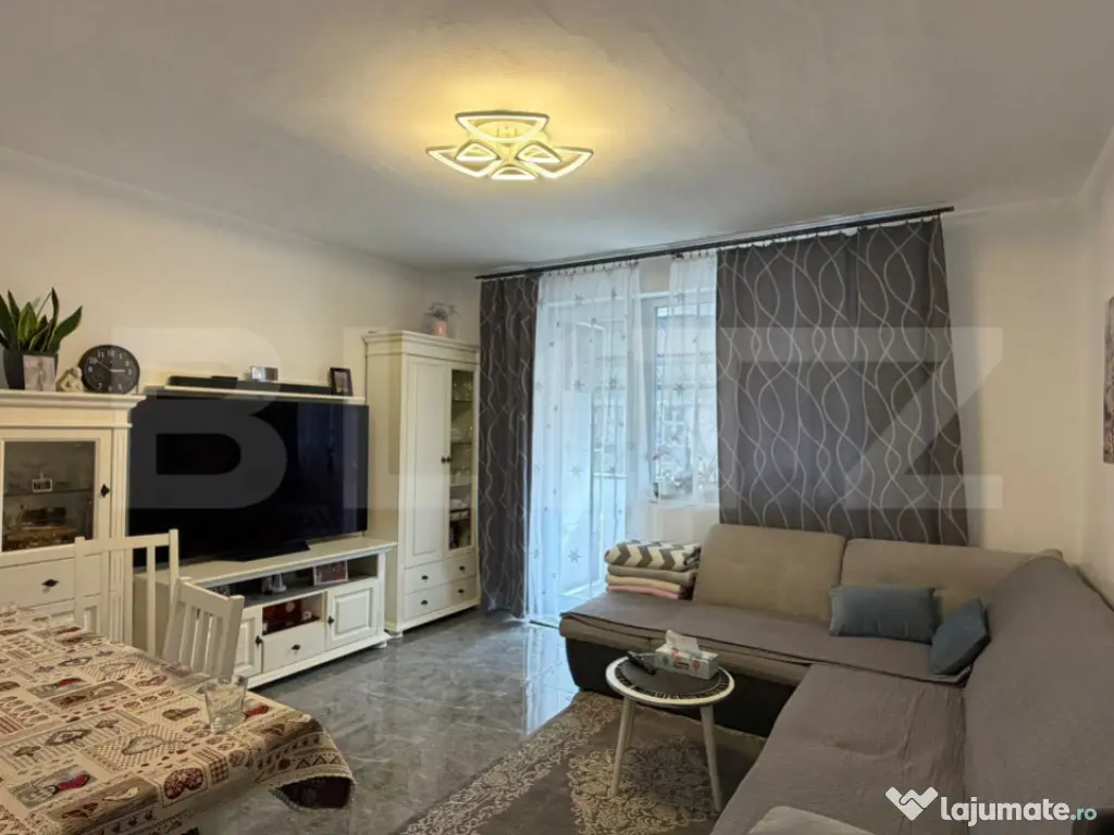 Blitz oferă spre vânzare apartament cu 3 camere decomandate, situat într-una dintre cele mai aerisite și verzi zone din Cluj-Napoca – Gheorgheni, la 3 minute de Iulius Mall. Apartamentul a fost complet restructurat și renovat: instalații electrice și sanitare noi, încălzire în pardoseală și centrală termică Vaillant în condensare. Se vinde complet mobilat și utilat, fiind pregătit pentru mutare imediată. Suprafața este eficient compartimentată de 61mp utili si 5mp balcon deschis. Construcția solidă pe structură de beton, cu pereți groși din cărămidă (35 cm), oferă un confort termic și fonic ridicat. Geamurile tripan Weka contribuie suplimentar la izolație. Blocul urmeaza să fie izolat termic exterior și refăcută scara interioară. Acoperișul este hidroizolat si are cameră de aerisire. Imobilul este unul liniștit, cu doar 2 apartamente pe nivel, oferind intimitate și confort. Zona este un mare avantaj: spații verzi generoase, distanță mare între blocuri și acces facil către puncte de interes precum Auchan, Lidl, Kaufland, Mega Image, școli, grădinițe, creșe, Baza Sportivă Gheorgheni și Iulius Mall. Ideal atât pentru locuință personală, cât și pentru investiție. Cod ofertă / ID BLITZ: P167809 Id intern: P167809 Confort: 1 Tip imobil: Bloc de apartamente Număr Băi: 1