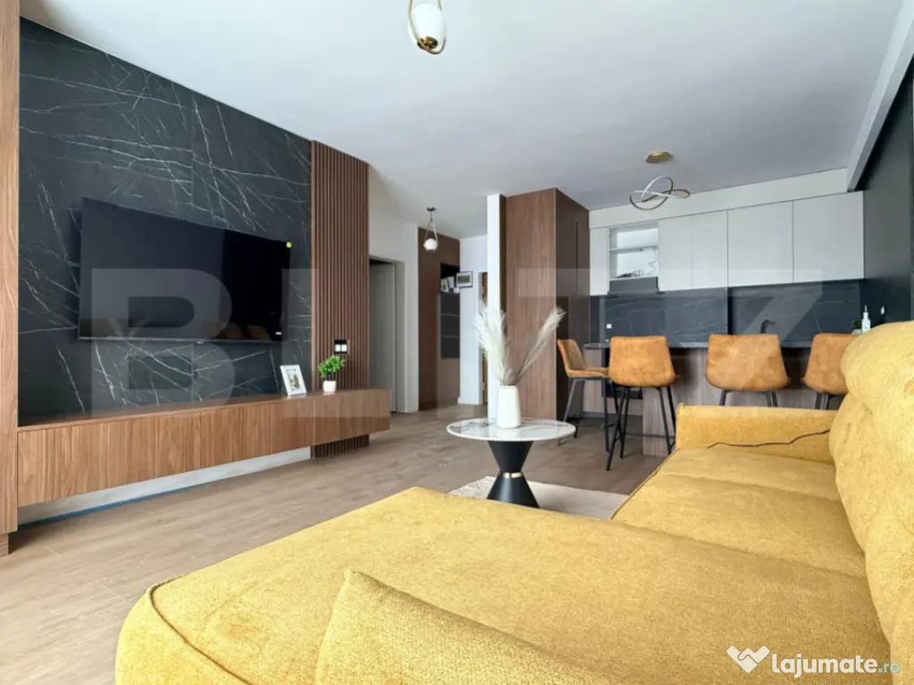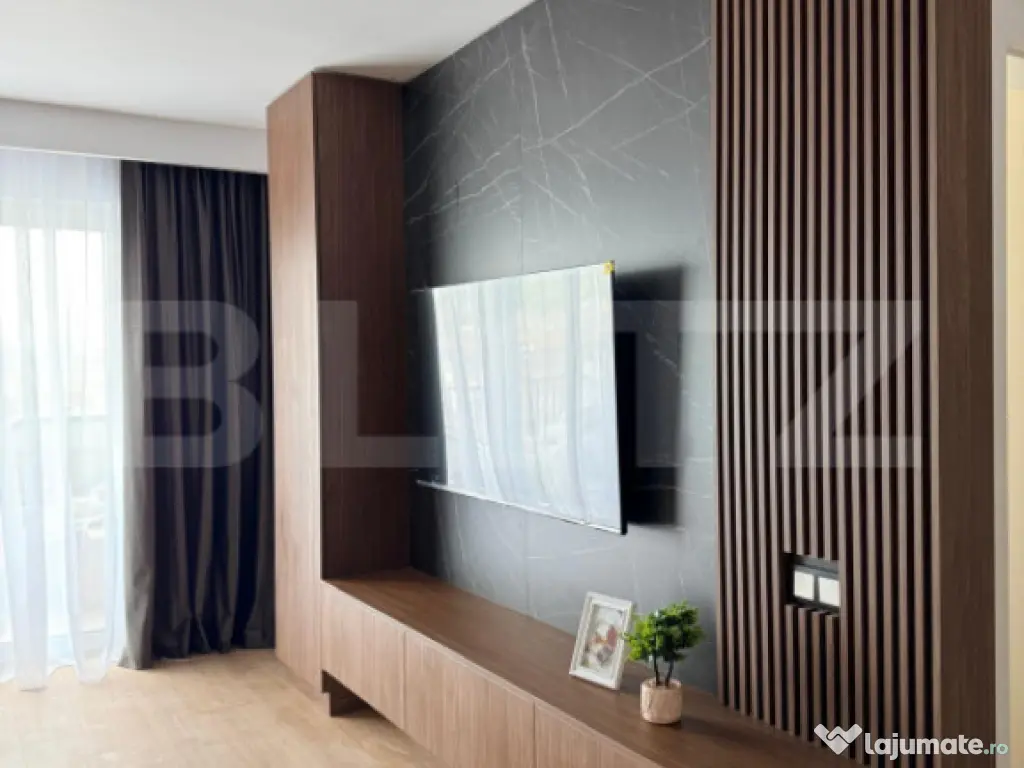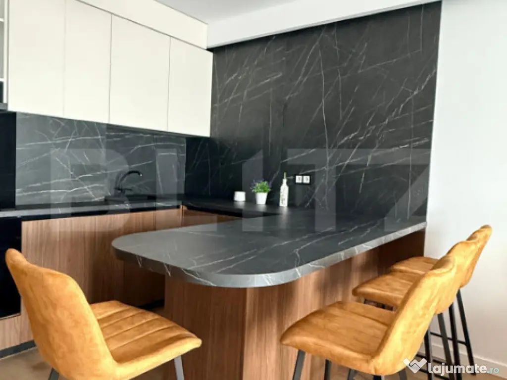 Blitz vă oferă spre vânzare un apartament lux cu 2 camere, situat pe strada Eroilor, într-o zonă foarte căutată datorită accesului excelent către magazine, stații de transport în comun și spații verzi. Apartamentul este poziționat la etajul 6 al unui imobil cu 8 etaje, într-o clădire îngrijită și bine construită. Acesta dispune de o suprafață utilă de 48.81 mp, la care se adaugă o terasa de 10.33 mp, ideala pentru relaxare. Compartimentarea semidecomandată este eficient realizată și se prezintă astfel: living modern cu bucătărie open-space, dormitor luminos, baie complet echipată și hol cu spații de depozitare. Finisajele și mobilierul sunt de categorie superioară, apartamentul avand bucătărie complet mobilată, dotată cu electrocasnice încorporabile, living amenajat modern, dormitor mobilat funcțional si baie complet utilata. Locuința este foarte luminoasă și oferă o atmosferă primitoare, fiind potrivită atât pentru locuit, cât și ca investiție cu randament excelent. Opțional se poate achiziționa un loc de parcare subteran la prețul de 9.000 euro. Nu ezitați să ne contactați pentru mai multe detalii sau pentru stabilirea unei vizionări! Cod ofertă / ID BLITZ: P169681 Id intern: P169681 Confort: 1 Tip imobil: Bloc de apartamente Număr Băi: 1