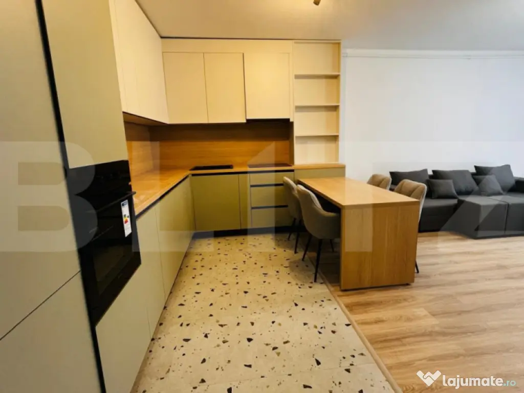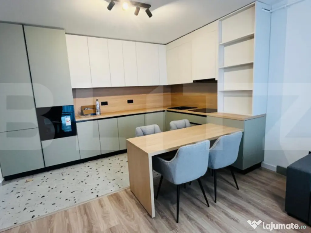 Blitz vă oferă spre vânzare un apartament lux cu 2 camere, situat pe strada Eroilor, într-o zonă foarte căutată datorită accesului excelent către magazine, stații de transport în comun și spații verzi. Apartamentul este poziționat la etajul 1 al unui imobil cu 8 etaje, într-o clădire îngrijită și bine construită. Acesta dispune de o suprafață utilă de 52.69 mp, la care se adaugă o terasa de 9.57 mp, ideala pentru relaxare. Compartimentarea semidecomandată este eficient realizată și se prezintă astfel: living modern cu bucătărie open-space, dormitor luminos, baie complet echipată și hol cu spații de depozitare. Finisajele și mobilierul sunt de categorie superioară, apartamentul avand bucătărie complet mobilată, dotată cu electrocasnice încorporabile, living amenajat modern, dormitor mobilat funcțional si baie complet utilata. Locuința este foarte luminoasă și oferă o atmosferă primitoare, fiind potrivită atât pentru locuit, cât și ca investiție cu randament excelent. Opțional se poate achiziționa un loc de parcare subteran la prețul de 9.000 euro. Nu ezitați să ne contactați pentru mai multe detalii sau pentru stabilirea unei vizionări! Cod ofertă / ID BLITZ: P169674 Id intern: P169674 Confort: 1 Tip imobil: Bloc de apartamente Număr Băi: 1
