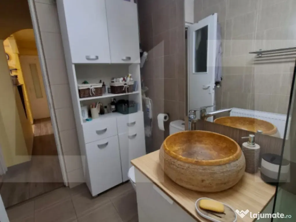 Blitz va ofera spre vanzare un apartament cu 2 camere decomandate, situat la parterul unui imobil din zona Lipovei, una dintre cele mai apreciate si bine conectate zone rezidentiale din Timisoara. Proprietatea se remarca prin versatilitate, fiind ideala atat pentru locuit, cat si pentru desfasurarea unor activitati comerciale (cabinete sau birouri). Apartamentul dispune de o suprafata utila de 53,63 mp si este compartimentat eficient in 2 camere spatioase si complet decomandate, o bucatarie generoasa, hol larg (ideal pentru receptie sau zona de asteptare) si baie. Beneficiaza de confort 1 si este dotat cu centrala proprie pe gaz, oferind un plus de confort si eficienta energetica. Un avantaj major il reprezinta cele doua spatii de depozitare (boxe): una alipita direct de apartament, extrem de practica pentru acces rapid, si una situata la subsol, ideala pentru depozitarea diverselor echipamente sau bunuri. Datorita pozitionarii la parter si accesului facil, proprietatea este pretabila pentru multiple tipuri de activitati, precum: cabinet stomatologic, veterinar, psihologic, nutritie, logopedie, birou de contabilitate sau consultanta, salon de cosmetica sau masaj, dar si alte activitati ce necesita vizibilitate si accesibilitate ridicata. Zona Lipovei ofera toate facilitatile necesare unui stil de viata confortabil: mijloace de transport in comun, unitati de invatamant (Scoala Generala Nr. 7 „Sfanta Maria” la doar cativa metri), magazine (Kaufland, Lidl, Auchan, Mega Image), farmacii, sali de fitness (Gym One), piete si numeroase alte puncte de interes, toate aflate la distanta pietonala. Pentru mai multe detalii sau pentru programarea unei vizionari, nu ezitati sa ne contactati! Cod ofertă / ID BLITZ: P148102 Id intern: P148102 Confort: 2 Tip imobil: Bloc de apartamente Număr Băi: 1