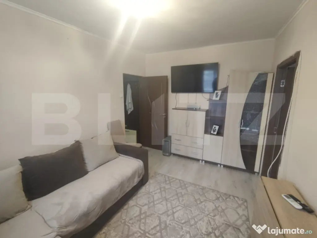Blitz vă oferă spre vânzare acest aparatament cu 2 camere și o suprafață utilă de 34 mp, poziționat la etajul 4 din 4, al unui bloc cu acoperis. Apartamentul este finisat și mobilat, perfect pentru a vă găzdui chiar din prima zi după achiziție. La doar câțiva pași vă stă la dispoziție Colegiul Onisifor Ghibu, Lotus, cafenele, restaurante și acces la transportul în comun care vă conectează cu întreg orașul. Acest imobil beneficiaza si de urmatoarele imbunatatiri: usa de siguranta, aparat de aer conditionat, apartamnt utilat si mobilat complet, geam la baie, interfon etc.