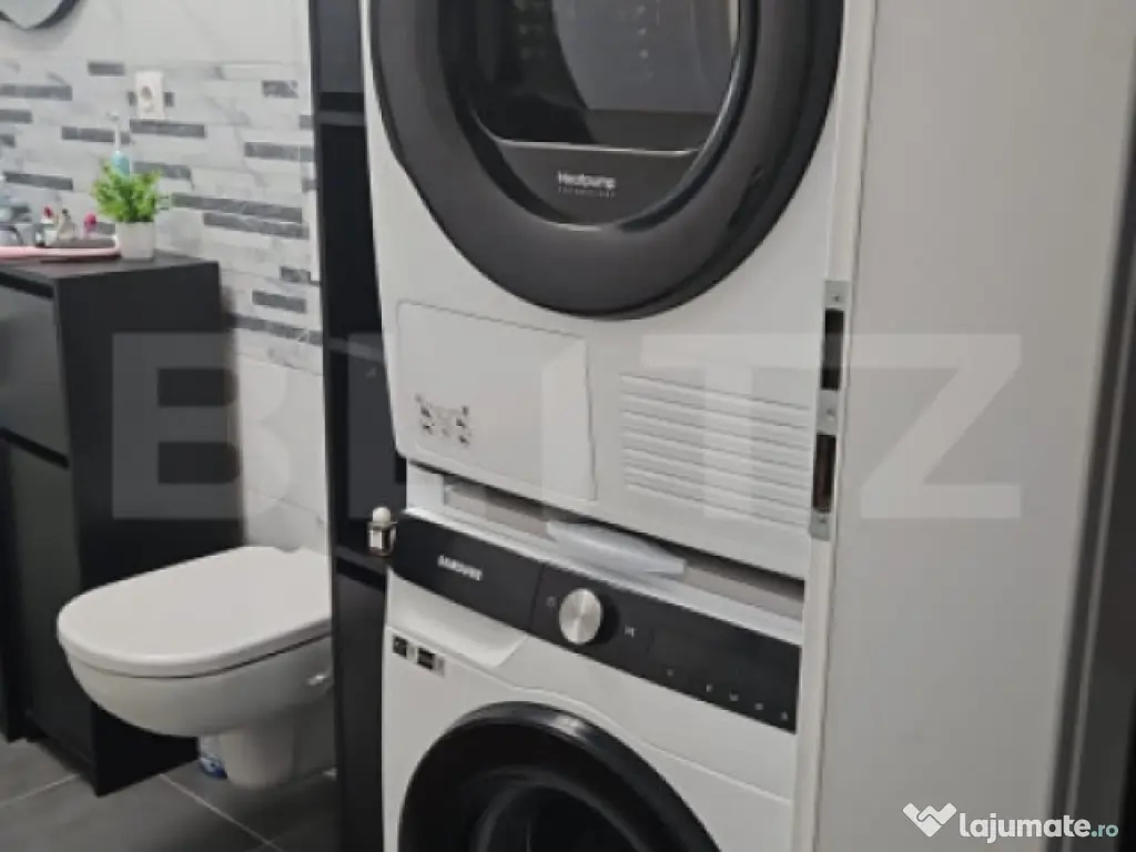 Va propunem spre vanzare un apartament complet mobilat si utilat, situat in complexul Maurer, la etajul 1. Proprietatea are o suprafata construita de 76 mp si o suprafata utila de 59 mp, fiind compartimentata eficient si beneficiind de lumina naturala pe tot parcursul zilei datorita orientarii pe doua parti ale blocului. Apartamentul este compus dintr-un living spatios, amenajat cu canapea extensibila de 3 locuri cu topper cu memorie, mobilier pentru depozitare, comoda TV si zona de dining cu masa extensibila si 6 scaune, cu acces direct la balcon. Dormitorul este dotat cu pat matrimonial (160x200), saltea, dulap pentru haine si zona dedicata pentru machiaj. In plus, exista un dressing care poate fi folosit si ca birou. Holul este prevazut cu spatii de depozitare, iar baia beneficiaza de geam pentru ventilatie naturala si este echipata cu masina de spalat rufe si uscator Samsung. Bucataria este complet utilata si include centrala Ariston, masina de spalat vase Bosch, combina frigorifica Beko cu dozator de apa, cuptor electric Bosch, plita pe gaz Bosch, hota si cuptor cu microunde Samsung. Confortul este completat de aer conditionat cu invertor in living (cu functie de incalzire), plase de insecte la geamuri, precum si doua televizoare in living si dormitor. Balconul este inchis cu parapet zidit. Proprietatea include si o boxa de depozitare in bloc. Apartamentul reprezinta o oportunitate excelenta atat pentru locuit, cat si pentru investitie, existand posibilitatea preluarii actualului chirias, care achita o chirie lunara de 500 euro. Pentru mai multe detali sau pentru a programa o vizionare ne puteti contacta. Cod ofertă / ID BLITZ: P168653 Id intern: P168653 Confort: 1 Tip imobil: Bloc de apartamente Număr Băi: 1
