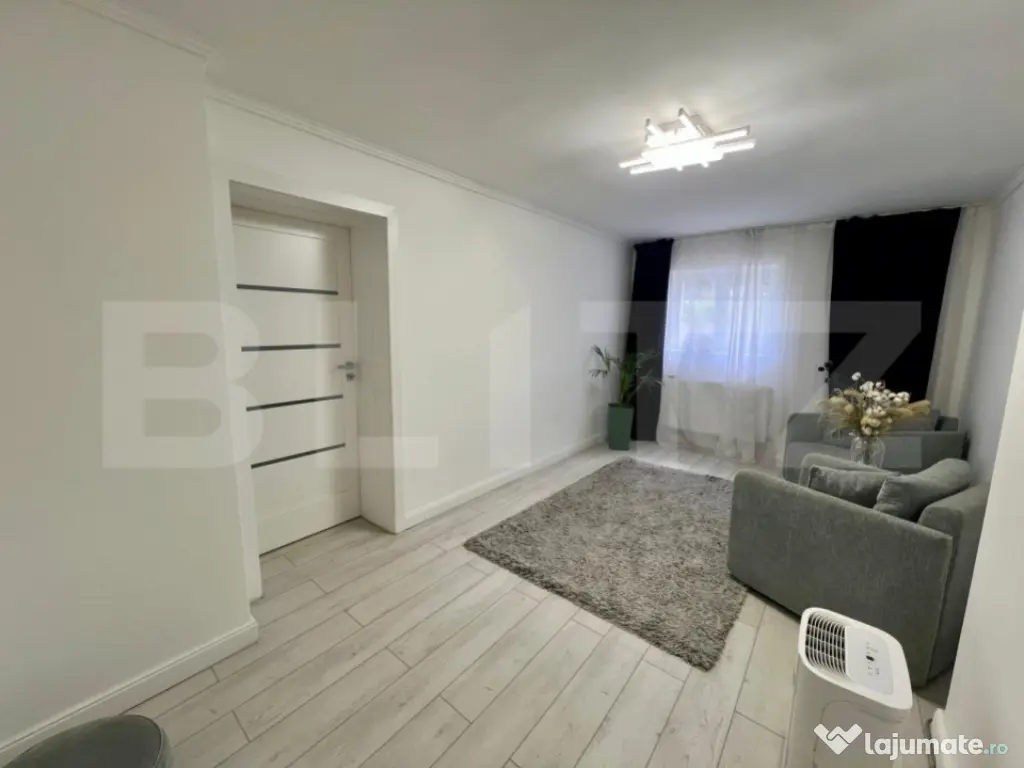 Blitz va propune spre inchiriere un apartament elegant cu 3 camere, situat în inima orașului, intr-o zona foarte linistita. Cu o suprafață generoasă de 70 de metri pătrați, acest apartament se află la demisolul unui imobil cu 4 nivele, oferind un spatiu generos si luminos, amenajat cu bun gust. Livingul este spatios, bucataria complet mobilata si utilata cu , plita pe gaz, cuptor pe gaz, frigider si tot ce este necesar pentru confortul dumneavoastra. Fiecare cameră este amenajată cu atenție la detalii, dormitoarul mare avand un pat matrimonial si spatii generoase pentru depozitare, oferind un ambient primitor și relaxant. Apartamentul este echipat cu o centrală termică asigurând un climat confortabil în orice sezon al anului. Complet mobilat și utilat, acest apartament este pregătit să vă întâmpine cu toate facilitățile necesare pentru a vă face să vă simțiți ca acasă încă de la prima zi. Acest spațiu rafinat și funcțional este alegerea ideală pentru un stil de viață urban și confortabil si este disponibil imediat. Apartamentul se afla la doar 5 minute de mers fata de centrul istoric al orasului, iar in proximitatea acesteia se afla restaurante, baruri, cafenele, banci, magazine. Va asteptam cu drag la vizionare! Cod ofertă / ID BLITZ: P170040 Id intern: P170040 Confort: 3 Tip imobil: Bloc de apartamente Număr Băi: 1