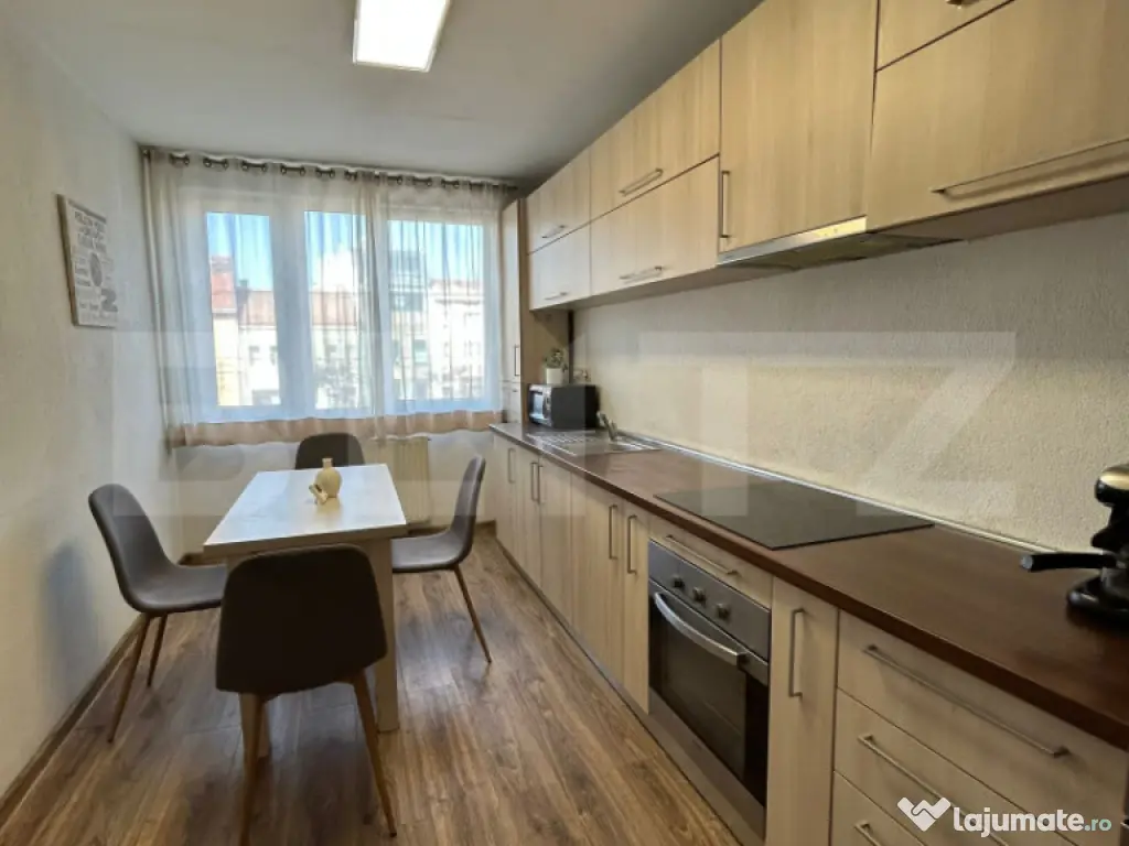 Blitz vă propune spre închiriere un apartament cu 2 camere, situat într-o zonă ultracentrală, ideal pentru persoanele care își doresc să locuiască în apropierea principalelor puncte de interes ale orașului. Apartamentul este poziționat la etajul 1 al unui imobil cu regim de înălțime P+4, oferind acces facil și confort. Apartamentul este semidecomandat, foarte luminos și se închiriază complet mobilat și utilat, fiind pregătit pentru mutare imediată. Spațiile sunt amenajate într-un mod practic și funcțional, oferind un ambient plăcut și confortabil pentru viitorii chiriași. Zona în care este amplasată proprietatea oferă acces rapid către magazine, instituții, restaurante, universități și mijloace de transport în comun, fiind o alegere potrivită atât pentru un cuplu, cât și pentru o persoană care își dorește să locuiască în centrul orașului. Pentru mai multe informații sau pentru programarea unei vizionări, vă stăm cu drag la dispoziție. Cod ofertă / ID BLITZ: P166956 Id intern: P166956 Confort: 1 Tip imobil: Bloc de apartamente Număr Băi: 1