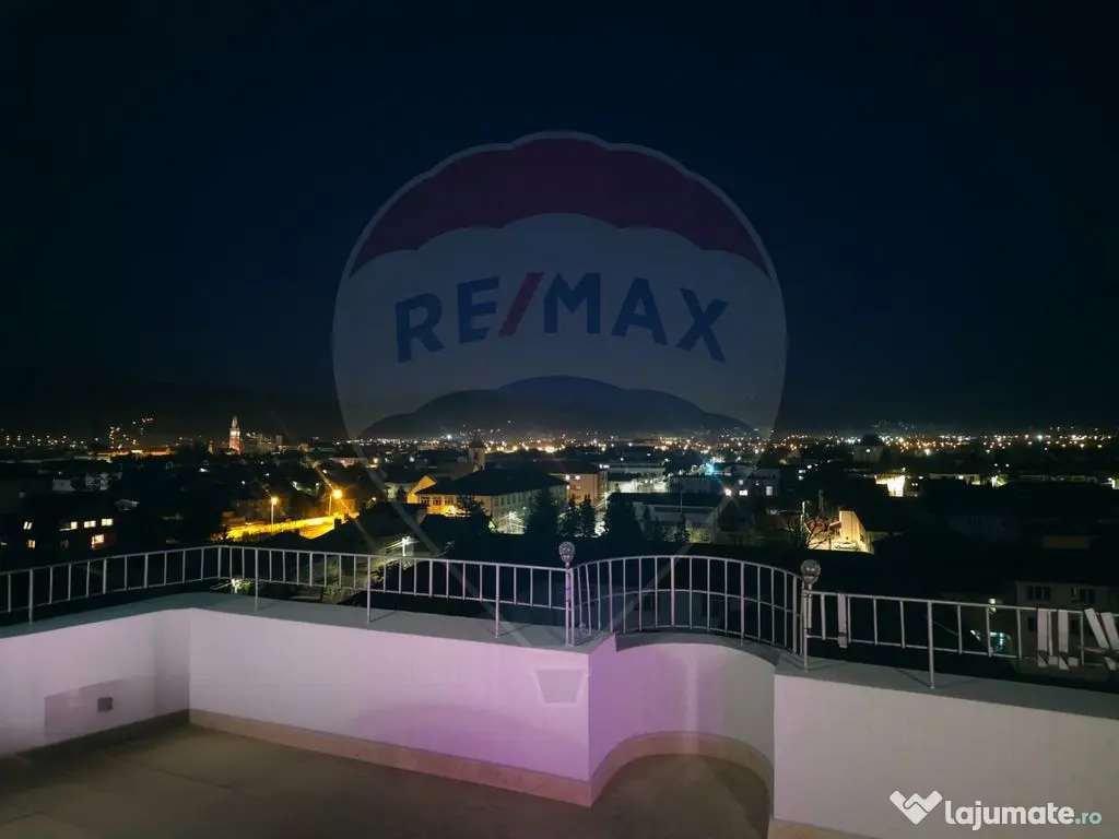 Ți-ar plăcea să locuiești într-un apartament tip penthouse cu terasă panoramică? Astfel de proprietăți apar rar pe piață. Situat la etajul 7, în centrul orașului, acest apartament modern cu 2 camere impresionează prin spațiu, lumină naturală și priveliști spectaculoase asupra orașului și a munților din împrejurimi. Cu 70 mp utili și o terasă generoasă de 40 mp, locuința oferă un spațiu ultramodern, ideal pentru momente de relaxare, dimineți liniștite cu o cafea sau seri în care te poți bucura de panorama deosebită. Zona de living, luminoasă și aerisită, se continuă natural cu bucătăria open space, creând un spațiu contemporan, perfect pentru relaxare sau socializare. Dormitorul este conceput ca un refugiu intim și confortabil, iar baia modernă, cu perete de sticlă, completează designul elegant al apartamentului. Această locuință este ideală pentru cei care apreciază spațiile luminoase, priveliștile spectaculoase și confortul unui stil de viață urban, chiar în inima orașului. Te invit să mă contactezi pentru mai multe detalii sau pentru a programa o vizionare. Confort: Lux Tip imobil: Bloc de apartamente Număr Băi: 1 Posibilitate parcare: Nu
