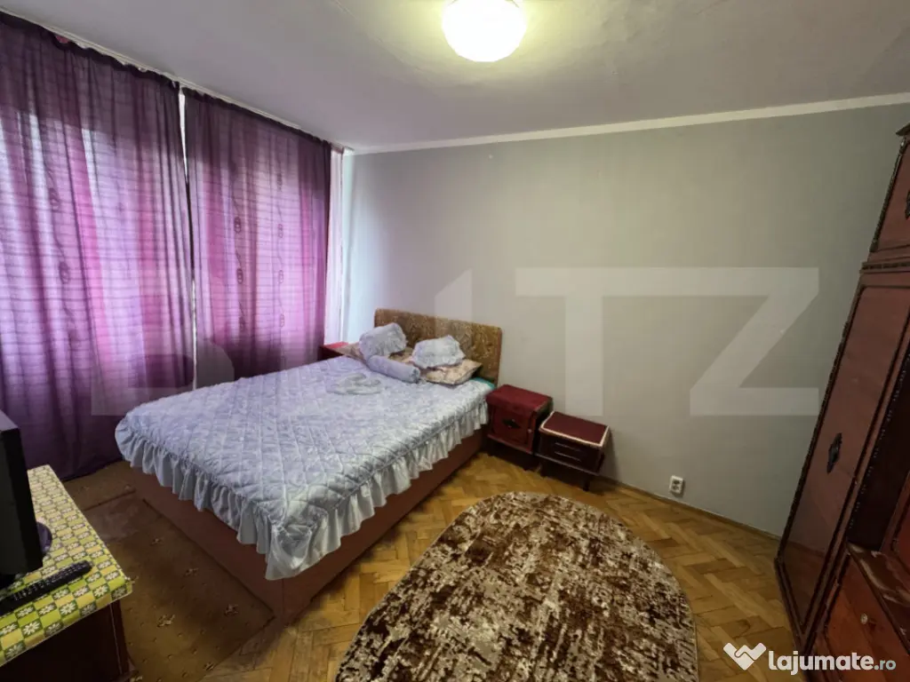BLITZ oferă spre închiriere un apartament de 2 camere, cu o suprafață de 51 mp, situat la etajul 4 al unui imobil cu 4 niveluri. Locuința este complet mobilată și utilată, fiind ideală pentru cei care caută un spațiu funcțional și primitor. Dispune de un living luminos, un dormitor confortabil, bucătărie echipată cu frigider, aragaz și hotă, baie cu geam, precum și 3 debarale care asigură spațiu generos pentru depozitare. Apartamentul este dotat cu 2 televizoare și se predă gata pentru mutare.De asemenea, dispune de un sistem de aer conditionat!