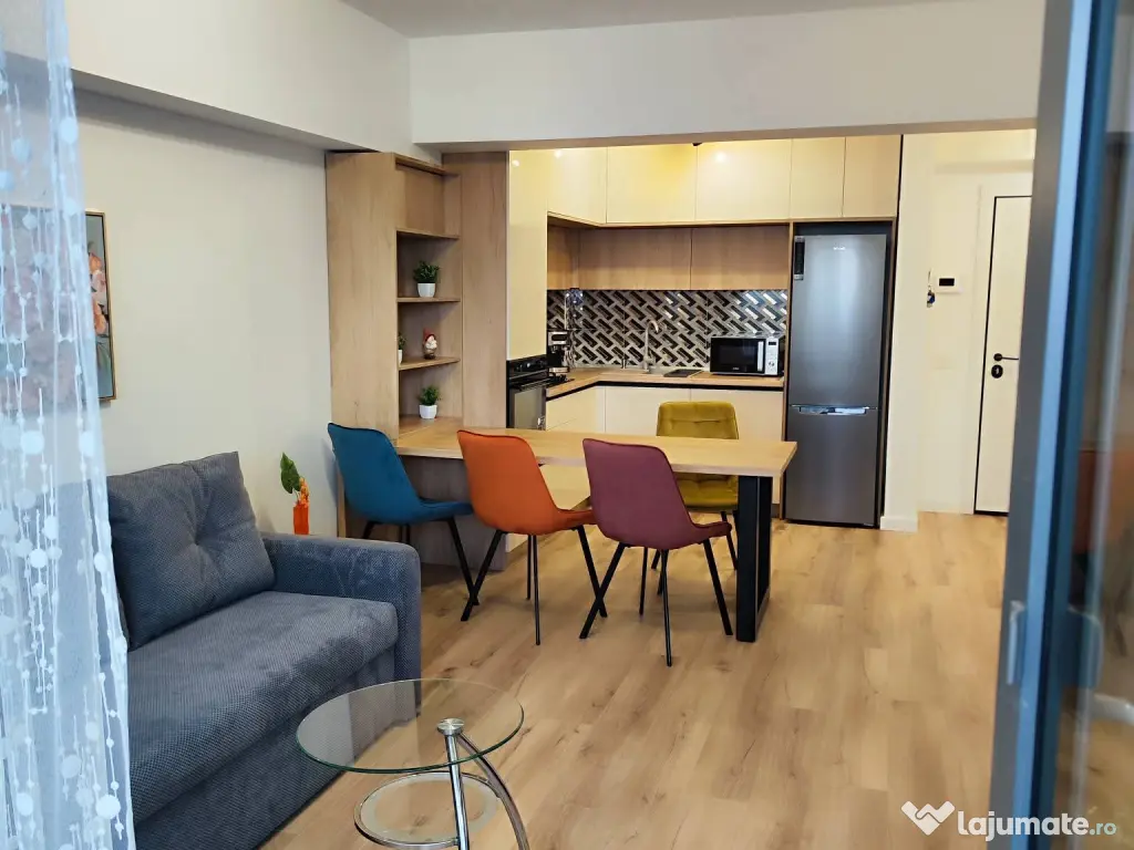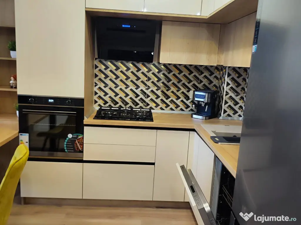 Dotări: Mobilat complet și utilat cu electrocasnice noi (mașină de spălat rufe, frigider, mașina de spălat vase, cuptor cu microunde, expresor cafea, plită, hotă, cuptor, 2 Smart TV).