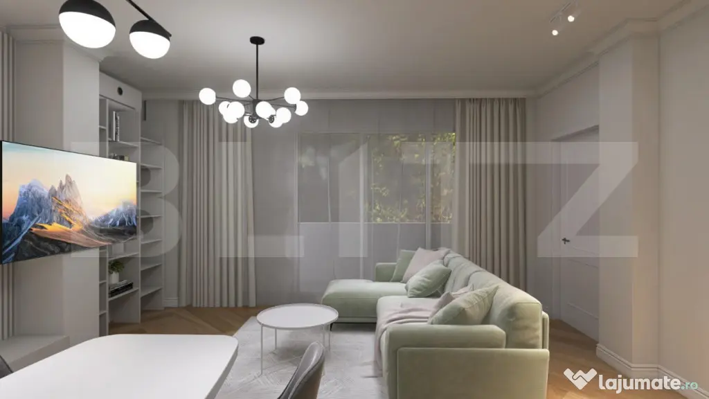 Blitz imobiliare va propune spre vanzare un apartament cu 2 camere, situat in cartierul rezidential Iosia. Toate spațiile au fost proiectate pentru a răspunde nevoilor vieții moderne, punând accentul pe folosirea unor materiale de calitate superioară și a unor tehnologii ce au ca scop reducerea costurilor de întreținere și atingerea unui nivel sporit de confort: Incălzirea în pardoseală, izolarea exterioara si panouri fotovoltaice reprezintă o premieră în sectorul construcțiilor imobiliare din Oradea. Apartamentul este situat la etajul 1 al blocului, dispunand de o configuratie inteligenta: camera de zi in spatiu deschis cu bucataria, 1 dormitor, 1 baie si balcon. Suprafata utila totala a apartamentului este de 52,48 mp si terasa de 14,68m finisata cu gresie si balustrada din sticla securizata. Curtea interioara este cu acces controlat si bariera automata. Apartamentul se vinde la stadiul de finisat la alb. Dintre facilitatile oferite amintim: incalzire in pardoseala , izolatie termica exterioara polistiren + vata de 15 cm, geamuri si usi termopan Rehau sticla tripla si profil de ultima generatie, lift SNEIDER, izolatie fonica superioara, spatii comerciale, rolete de aluminiu actionate electric, aparate de aer conditionat, terase circulabile cu hidroizolatie garantie 30 de ani, tevi de scurgere Silence, alimentare apa teava din inox, pereti exclusiv din caramida Porotherm, contorizare individuala. Apartamentul are acces usor la mijloacele de transport în comun, la centura orașului, de asemenea, în apropiere există un important pol comercial al orașului care cuprinde magazinele de retail Auchan, Jysk, Jumbo, Dedeman, Brico Depot și Leroy Merlin, alături de centrul comercial ERA Park si LOTUS RETAIL. În plus este situat la doar 15 minute de mers pe jos de centrul orasului. Cu o arhitectură modernă, acest ansamblu aduce un plus de vigoare şi dinamism într-o zonă liniștită și exclusivistă. Va asteptam la vizionare!
