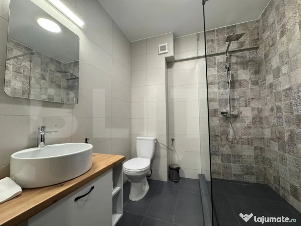Blitz vă oferă spre închiriere un apartament modern și extrem de spațios cu 1 cameră, situat la granița dintre cartierele Mănăștur și Zorilor, într-un imobil nou! O locuință premium, complet echipată, ideală pentru persoanele care apreciază confortul de top, spațiile generoase și accesul rapid la facilitățile orașului. Detalii proprietate – Suprafață utilă: 45 mp, cu o compartimentare optimizată pentru funcționalitate maximă – Regim de înălțime: Etajul 1 din 4, în cadrul unui imobil nou prevăzut cu ascensor – Spațiu exterior: Balcon propriu, excelent pentru relaxare – Parcare: 1 loc de parcare subteran privat inclus Confort & Avantaje – Confort termic premium asigurat de încălzirea în pardoseală (centrală pe gaz) și sistemul de aer condiționat. – Se închiriază complet mobilat și utilat cu absolut tot ce este necesar (plită, cuptor, frigider, mașină de spălat, TV, fier de călcat etc.). – Servicii active de internet și cablu TV (Digi). – O locuință impecabilă, gata să vă primească doar cu lucrurile personale. Localizare excelentă & Facilități Amplasarea strategică între Mănăștur și Zorilor vă oferă un echilibru perfect între liniște și accesibilitate urbană: – Cumpărături și servicii: Kaufland, Lidl, Carrefour, dar și săli de fitness, restaurante sau Cinema Dacia, toate în imediata apropiere. – Educație: Acces rapid și facil către Universitatea de Științe Agricole (USAMV). – Natură și relaxare: Parcul Iuliu Prodan se află la o scurtă plimbare distanță, oferind un cadru verde ideal pentru plimbări și deconectare. – Mobilitate: Conectivitate excelentă prin stațiile de autobuz aflate la câțiva pași, facilitând deplasarea rapidă spre centrul orașului. Disponibil imediat! Programează o vizionare și bucură-te de confortul unei locuințe noi, spațioase și complet echipate! Cod ofertă / ID BLITZ: P168754 Id intern: P168754 Confort: 1 Tip imobil: Bloc de apartamente Număr Băi: 1 Nr. locuri parcare: 1