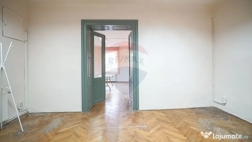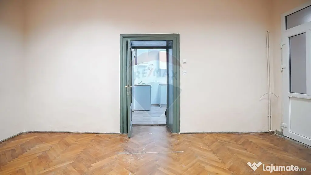 Apartamentul este compus din 2 camere, bucatarie, baie si camara in suprafata utila de 65 mp cu o camera orientata la strada principala. Apartamentul se afla la parter, este nemobilat si neutilat (cu exceptia bucatariei si obiectelor sanitare). Dispune si de o pivnita la subsol de 8 mp cat si de o cota parte de 15.7% dintr-un teren de 1173.6 mp.