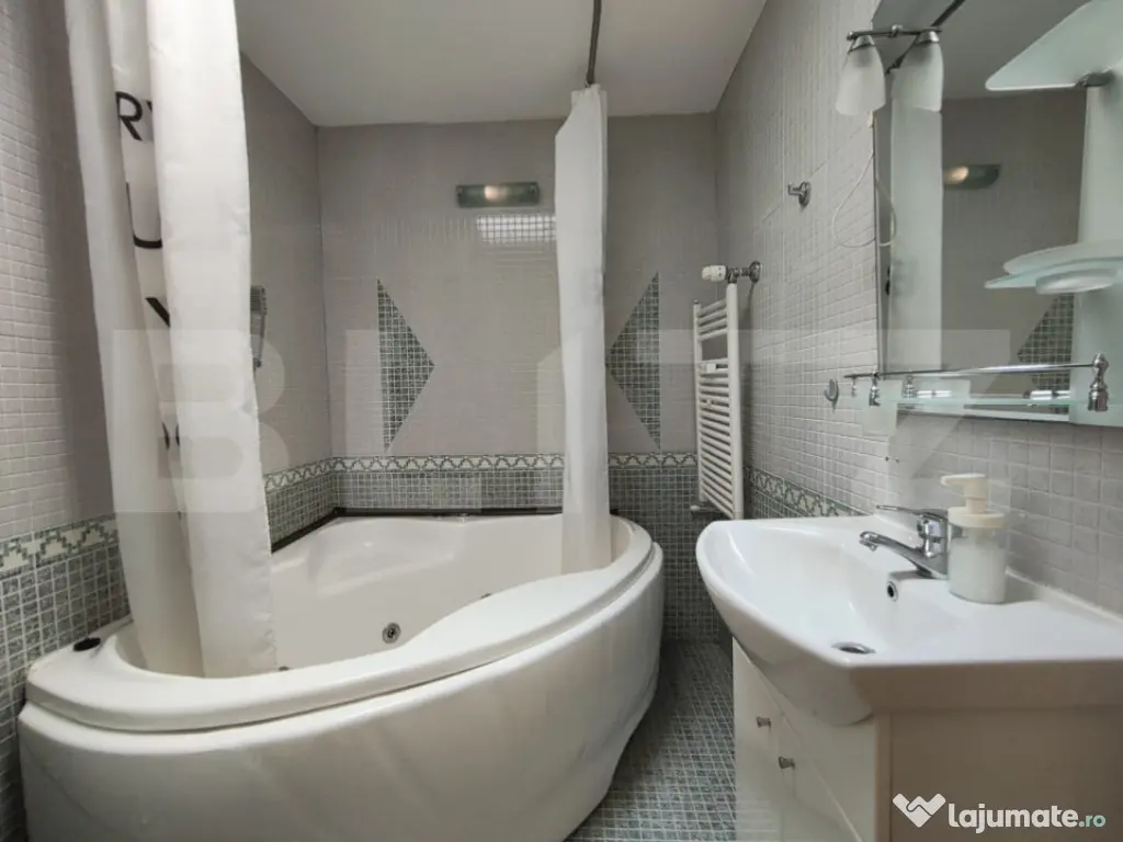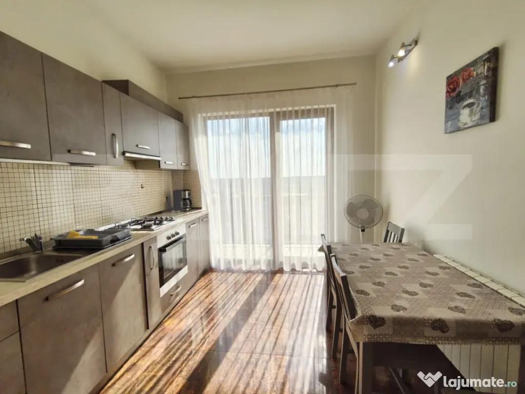 -Parter: bucatarie individuala complet utilata (combina frigorifica, cuptor incorporat, plita, hota, cuptor cu microunde, cafetiera, sandwich maker) cu iesire in balcon;