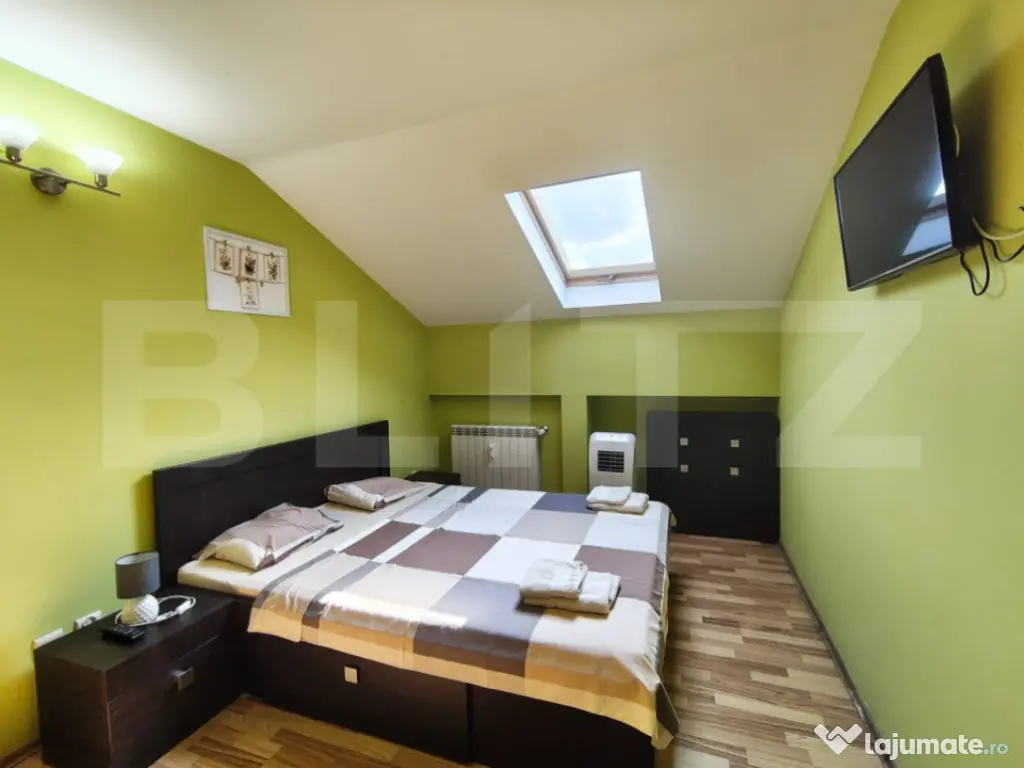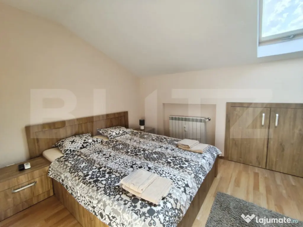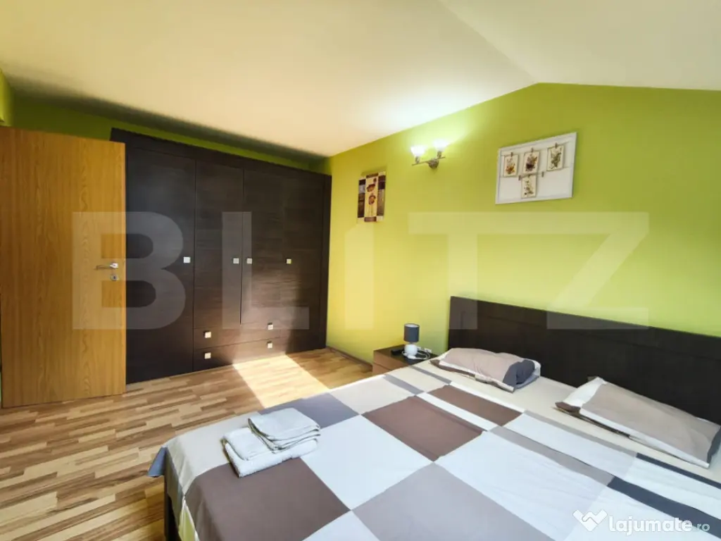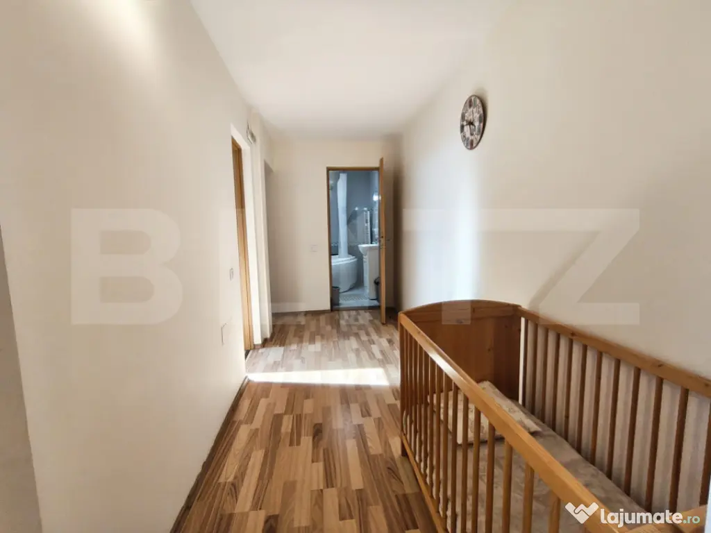 Etaj: doua dormitoare, baie cu jacuzzi, dressing mare si spatiu de depozitare.