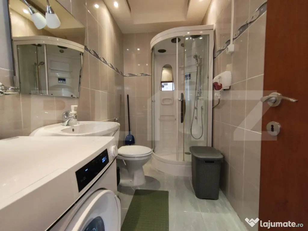 Zona este bine deservita de facilitati: magazin NON-STOP chiar la parterul blocului, statie de tramvai, brutarie, parc, case de schimb valutar si autoservire. Parcarea se face la liber, cu numeroase locuri disponibile in zona.