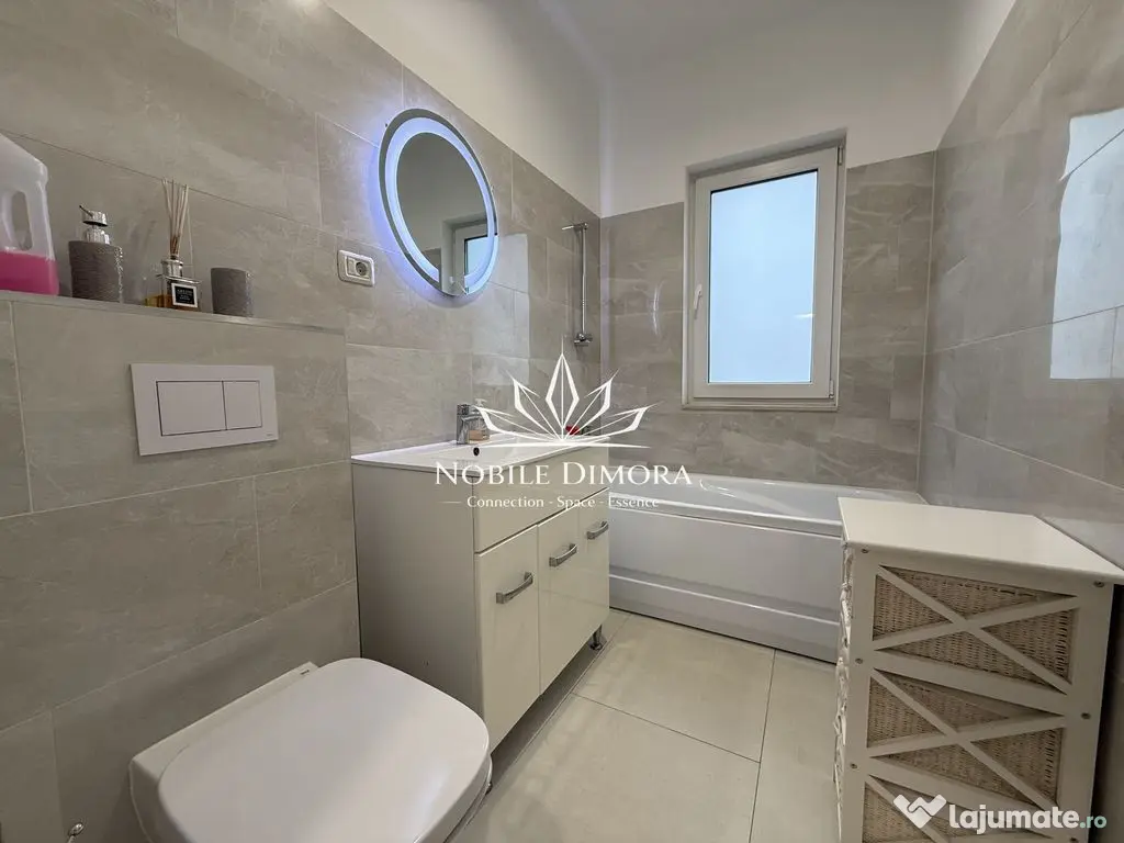Se inchiriaza complet mobilat si utilat, cu TV in living si dormitor, masina de spalat cu uscator, masina de spalat vase, cuptor, plita, hota, cuptor cu microunde si aer conditionat. Include doua locuri de parcare.
