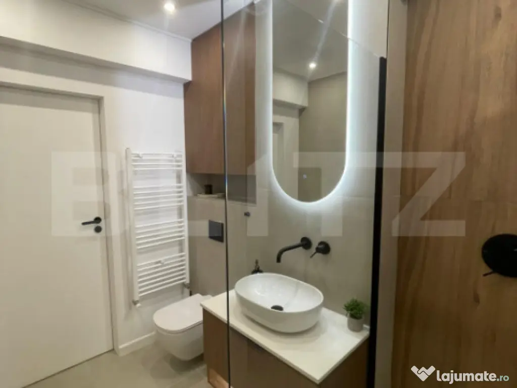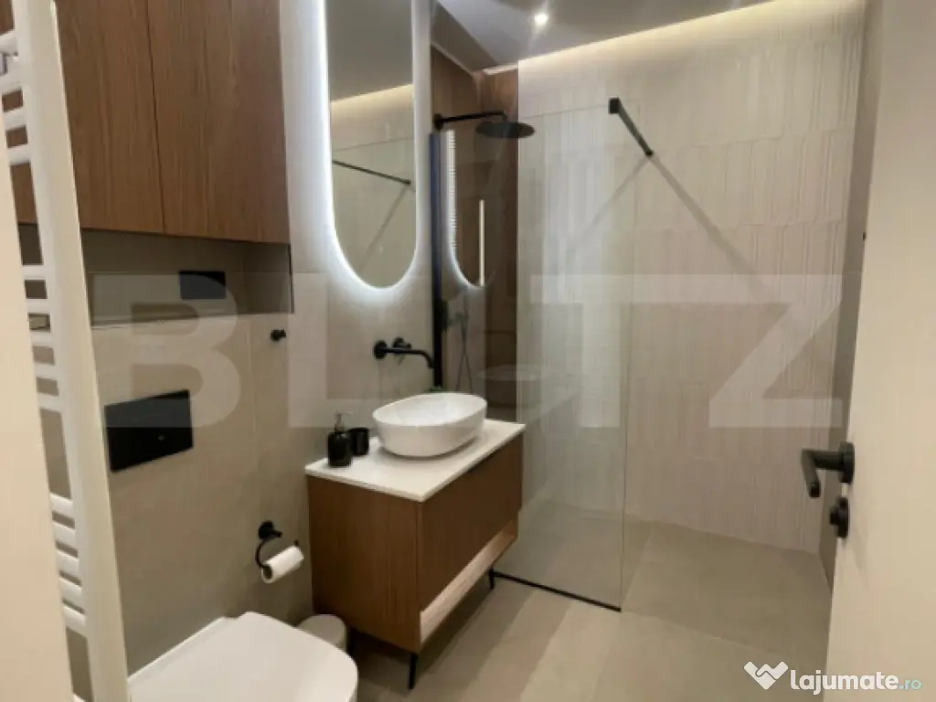 BLITZ vă propune un apartament cu 2 camere, poziționat într-o zonă rezidențială exclusivistă din proximitatea VIVO, ideal pentru cei care caută confort, liniște și acces rapid către oraș. Proprietatea are o suprafață utilă de 53 mp, la care se adaugă un balcon deschis de 6 mp, perfect pentru momente de relaxare. Este situată la parter înalt (echivalent etaj 1), într-un imobil nou, finalizat în 2025, construit la standarde ridicate și încadrat în clasa energetică A. Compartimentarea este modernă și eficientă: • living luminos cu bucătărie open space • dormitor spațios cu dressing generos • baie cu duș • hol Apartamentul este ultrafinisat, realizat cu materiale premium și atenție la detalii: tâmplărie tripan (3 foi de sticlă), uși interioare filomuro, finisaje elegante și contemporane. Se vinde complet mobilat și utilat, exact ca în poze — dotat cu toate electrocasnicele necesare: cuptor, plită cu inducție, combină frigorifică, mașină de spălat vase, mașină de spălat rufe, uscător, TV. Practic, te muți doar cu hainele. Zona oferă un echilibru perfect între liniște și accesibilitate — cartier de case, aerisit, foarte bine cotat, cu magazine și stații de transport în apropiere, dar și acces rapid către oraș. Separat, se poate achiziționa un loc de parcare exterior la prețul de 8.000€. Pentru mai multe detalii si programarea unei vizionări contactează-ne chiar acum! Cod ofertă / ID BLITZ: P168633 Id intern: P168633 Confort: 1 Tip imobil: Bloc de apartamente Număr Băi: 1 Nr. locuri parcare: 1