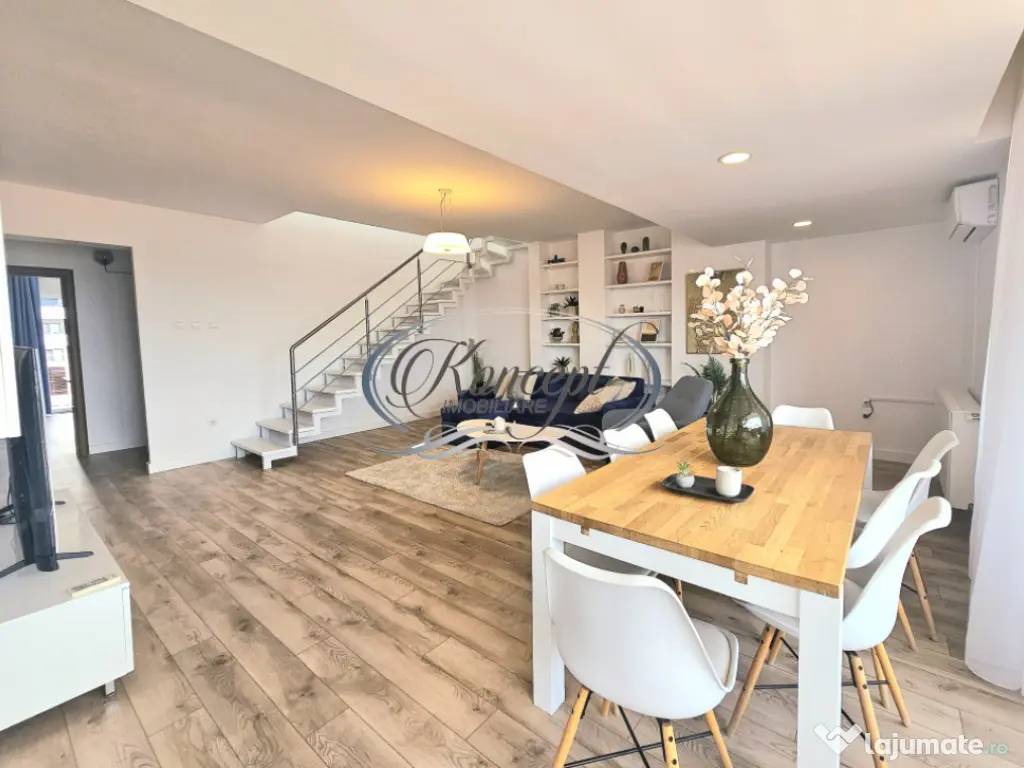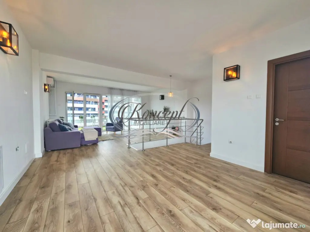 Koncept Imobiliare propune spre vanzare un apartament spectaculos dispus pe 2 niveluri, situat in cartierul Buna Ziua, pe strada Buna Ziua, la etajele 6 si 7 retrase ale unui imobil reprezentativ. Zona este apreciata pentru accesibilitatea excelenta, mixul functional complet si calitatea proiectelor rezidentiale, fiind una dintre cele mai cautate locatii pentru locuinte premium. Proprietatea are o suprafata generoasa de 160 mp utili si este compusa din 5 camere, 3 bai, bucatarie, hol si nu mai putin de 4 terase insumand 70 mp, cu acces direct din fiecare incapere. Apartamentul beneficiaza de un loc de parcare in garajul subteran, inclus in pret, ceea ce aduce un plus de confort. Finisajele sunt moderne, apartamentul este complet mobilat si echipat, iar incalzirea se realizeaza prin centrala de bloc. Renovarea integrala finalizata in 2025 asigura standarde inalte de confort, iar orientarea est-vest garanteaza luminozitate pe tot parcursul zilei. Configuratia open-space permite recompartimentari multiple, potrivite pentru diverse stiluri de viata. Prin dimensiuni, compartimentare si multiple terase, apartamentul este ideal pentru o familie care doreste o locuinta spatioasa, pentru o resedinta de protocol sau pentru investitie in inchirierea premium pe termen lung. Ansamblul in care se afla este primul din Cluj-Napoca ce reuneste locuinte, spatii comerciale, birouri, institutii de invatamant, centru sportiv si zone verzi intr-un concept urban complet. Actele au fost verificate si validate de agentie. Pentru informatii complete, programarea unei vizionari sau pentru a afla oferta noastra completa va stam la dispozitie telefonic, prin e-mail sau la sediul agentiei noastre, pe str. Aviator Badescu, nr. 19, Cluj-Napoca. Id intern: P20708 Confort: 1 Tip imobil: Bloc de apartamente Număr Băi: 3