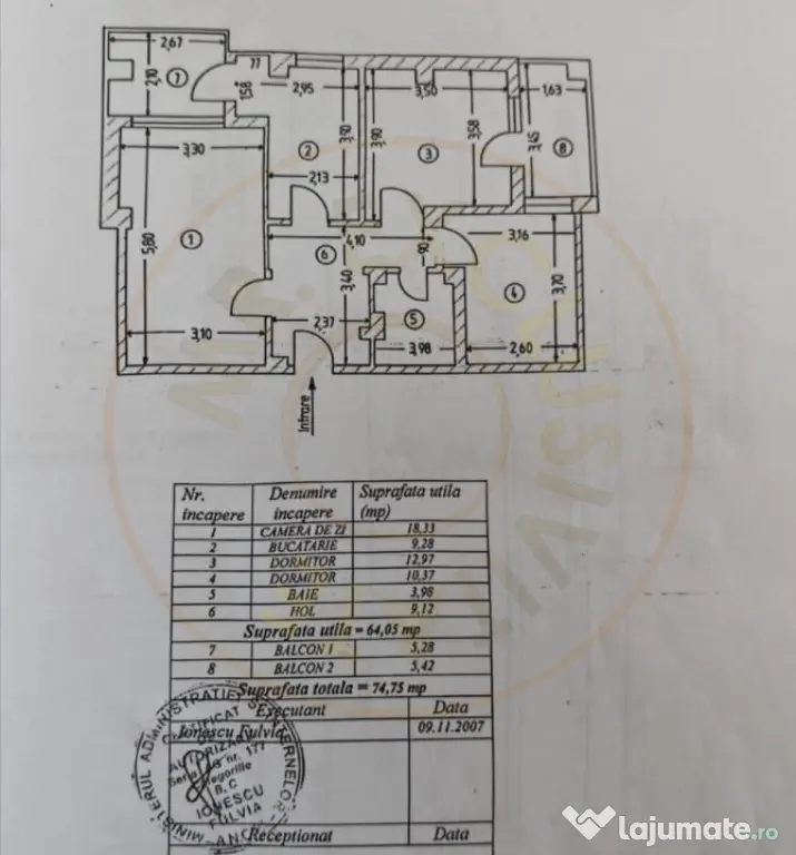Locuința are o suprafață totală de 74,75 mp și este compartimentată eficient, oferind: