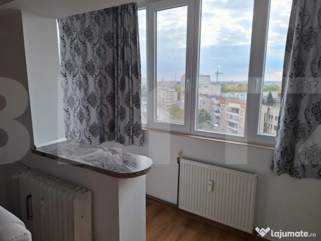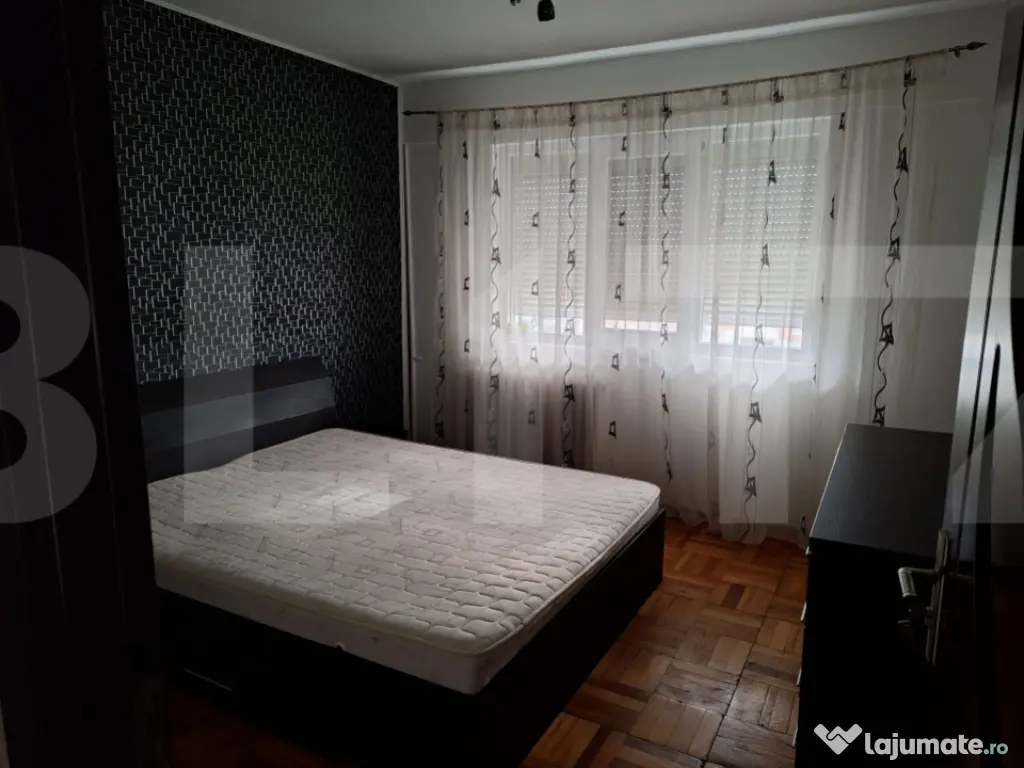 nchiriez apartament de 3 camere, mobilat și utilat complet, situat în zona Gării din Arad — zonă liniștită, bine conectată, cu stații de transport în comun la câțiva pași și acces rapid la toate punctele de interes ale orașului. Apartamentul se află la etajul 8 din 10, oferind o priveliște panoramică frumoasă asupra orașului și multă lumină naturală în toate camerele. Ce include: Living spațios cu mobilier modern, canapea și comodă TV Dormitor matrimonial cu pat dublu, șifonier și tapet decorativ A doua cameră — pat single, șifonier, vedere panoramică spre oraș Bucătărie separată, complet utilată — plită gaz, cuptor, hotă, mașină de spălat vase Mașină de spălat haine Hol generos cu șifonier oglindă 2 balcoane închise — spațiu suplimentar de depozitare sau relaxare Încălzire centralizată CET — costuri reduse iarna Parchet în camere, gresie în bucătărie și hol Suprafață: 79 mp utili Etaj: 8/10 Balcoane: 2 închise Compartimentare: decomandat Cod ofertă / ID BLITZ: P170006 Id intern: P170006 Confort: 1 Tip imobil: Bloc de apartamente Număr Băi: 1