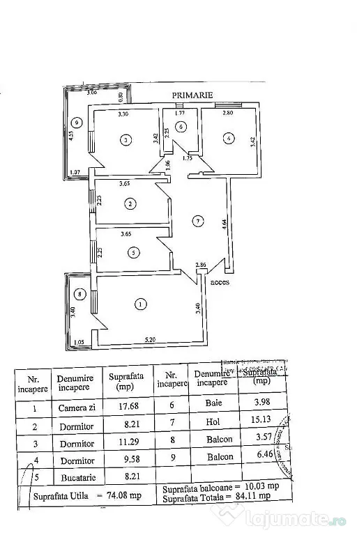 Apartamentul este decomandat și are o suprafață utilă de 84 mp, oferind spațiu generos pentru o familie numeroasă sau pentru cei care își doresc confort și intimitate.
