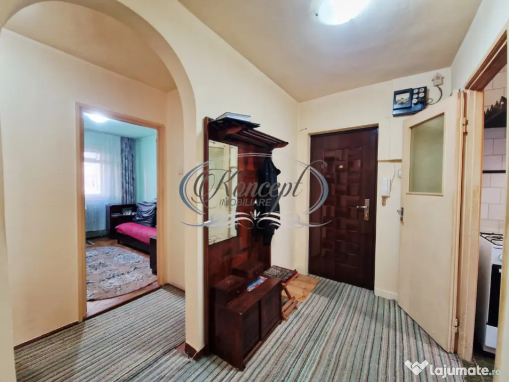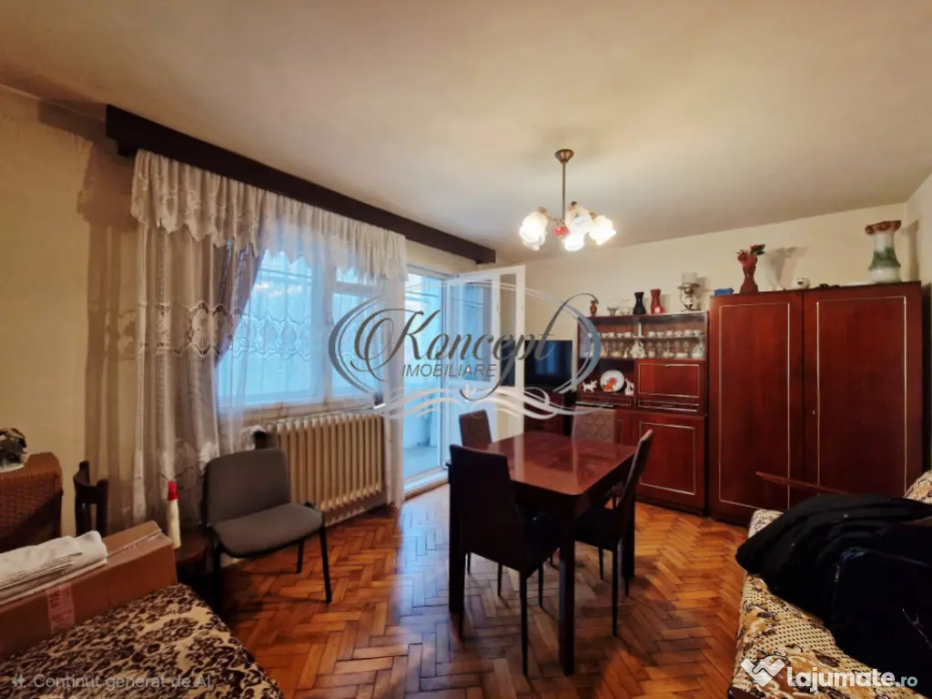 Koncept Imobiliare va ofera spre vanzare un apartament spatios, bine compartimentat, situat in cartierul Manastur, in zona supermarketului Supeco si pietei Flora, o locatie apreciata pentru accesibilitate, liniste si proximitatea fata de puncte de interes cotidian. Proprietatea este amplasata la parter inalt al unui imobil reabilitat termic cu regim de inaltime D+P+4E, inconjurat de spatii verzi si alei aerisite, cu acces facil catre mijloace de transport in comun, scoli, gradinite, parc pentru copii si multiple spatii comerciale. Apartamentul are o suprafata utila de 65,34 mp, la care se adauga un balcon inchis de aproximativ 7 mp, si dispune de o compartimentare decomandata, functionala, cu doua holuri ce asigura o separare eficienta a zonelor de zi si noapte. Configuratia include trei camere, doua bai, bucatarie separata, camara de alimente, debara si vestibul, oferind multiple spatii de depozitare si un confort sporit pentru o familie. In completare, proprietatea beneficiaza de doua boxe la subsol, un avantaj important pentru organizare si depozitare pe termen lung. Finisajele sunt de nivel mediu, cu parchet masiv in camere, geamuri cu tamplarie din lemn, iar balconul este inchis, putand fi utilizat ca spatiu auxiliar. Apartamentul se vinde mobilat si utilat, conform prezentarii, ceea ce permite mutarea imediata sau inchirierea fara investitii suplimentare. Incalzirea este asigurata prin sistemul centralizat de termoficare, cu calorifere, iar izolatia termica exterioara a blocului contribuie la costuri reduse de intretinere. Printre punctele forte se remarca pozitionarea intr-o zona linistita a Manasturului, orientarea est-vest care ofera lumina naturala pe parcursul zilei, compartimentarea decomandata cu doua bai, existenta spatiilor multiple de depozitare, cele doua boxe la subsol, precum si apropierea de parc, magazine si servicii esentiale. Posibilitatea de parcare in zona completeaza avantajele practice ale acestei locuinte. Apartamentul este recomandat atat pentru locuire, fiind potrivit unei familii care cauta spatiu, functionalitate si un cadru verde, cat si pentru investitie, datorita cererii constante din zona Manastur si a accesului facil catre punctele de interes urban. Pentru informatii suplimentare, programarea unei vizionari sau pentru a afla oferta noastra completa va stam la dispozitie telefonic, prin e-mail sau la sediul agentiei noastre, pe str. Aviator Badescu, nr. 19, Cluj-Napoca. Id intern: P21087 Confort: 1 Tip imobil: Bloc de apartamente Număr Băi: 2