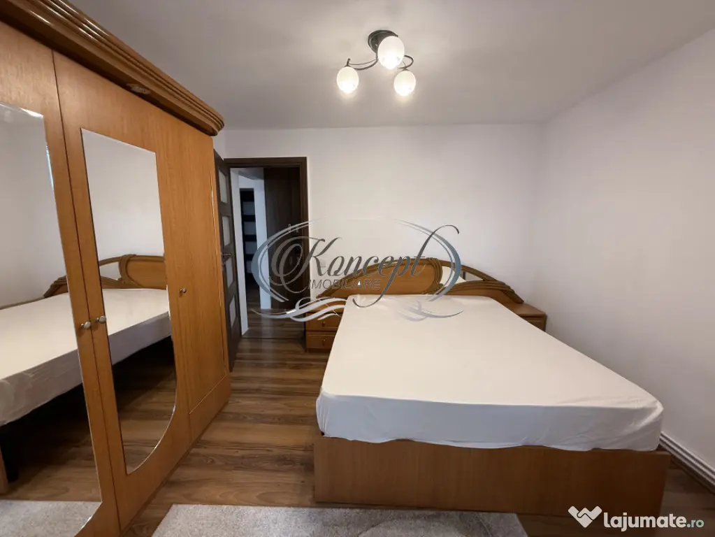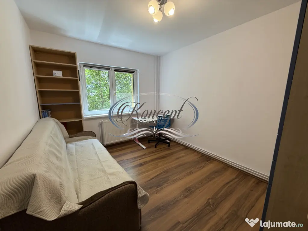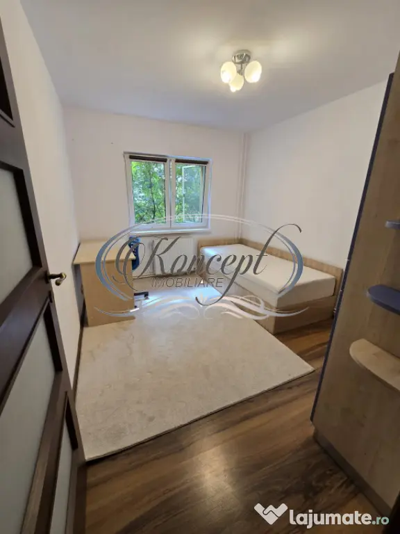 Koncept Imobiliare va ofera spre inchiriere un apartament cu 4 camere, situat in cartierul Gheorgheni, intr-o zona retrasa si linistita, dar excelent conectata la principalele puncte de interes din Cluj-Napoca. Pozitionat la etajul 3 al unui imobil cu regim redus de inaltime, in apropierea Pietei Cipariu si Bulevardului Titulescu, scoli, gradinite, transport in comun, magazine, zone verzi, Iulius Mall, etc. Acest apartament beneficiaza de o locatie care combina accesibilitatea urbana cu linistea unui cartier verde si aerisit. Proprietatea are o suprafata utila de 80 mp si este compartimentata inteligent in 4 camere, 2 bai, bucatarie separata, hol spatios si doua balcoane inchise. Configuratia este ideala pentru o familie sau pentru cei care doresc delimitarea clara a spatiilor de zi si noapte. Apartamentul este dotat cu centrala termica proprie si calorifere, ceea ce asigura un confort termic constant. Vederea catre spatii verzi, iluminarea naturala si existenta unui loc de parcare adauga plusvaloare experientei de locuire, intr-un context urban placut si bine organizat. Este o alegere potrivita pentru familii active sau profesionisti care cauta o zona accesibila, dar linistita, aproape de centru, scoli, parcuri si mijloace de transport. Imobilul ofera atat functionalitate, cat si un ambient placut pentru locuire pe termen lung. Pentru informatii complete, programarea unei vizionari sau pentru a afla oferta noastra completa va stam la dispozitie telefonic, prin e-mail sau la sediul agentiei noastre, pe str. Aviator Badescu, nr. 19, Cluj-Napoca.