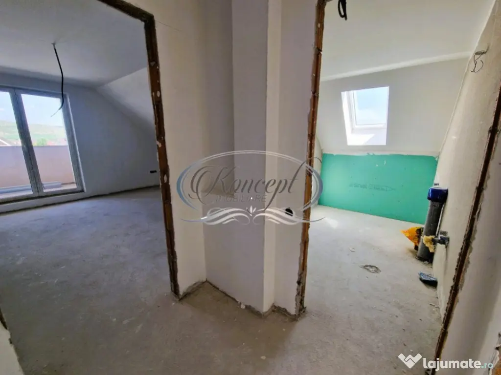 Koncept Imobiliare va ofera spre vanzare un apartament cu 4 camere intr-un imobil nou, premium, cu regim de inaltime D+P+3E+M, situat pe strada Cetatii, in Floresti. Apartamentul este situat la Mansarda, are suprafata utila de 78.1 mp la care se adauga o terasa superba de 21.3 mp. Acesta este compartimentat dupa cum urmeaza: 3 dormitoare, living open-space cu bucataria, terasa, 2 bai, dressing si hol. Acesta se vinde semifinisat cu centrala termica proprie, incalzire in pardoseala, videointerfon, sapa autonivelanta si toate utilitatile trase pe pozitie. La pretul afisat se adauga TVA, iar pretul unui loc de parcare este 5.000 euro TVA inclus. Datorita zonei usor accesibile si aproape de punctele de interes ale zonei, dar si al compartimentarii, apartamentul se recomanda unei familii tinere. Actele au fost verificate si validate de agentie, garantand un proces de vanzare rapid si transparent, chiar si cu credit bancar. Pentru informatii suplimentare, programarea unei vizionari sau pentru a va prezenta oferta noastra completa, nu ezitati sa ne contactati telefonic, prin e-mail sau la sediul agentiei noastre de pe Str. Aviator Badescu nr. 19, Cluj-Napoca. Id intern: P20438 Confort: 1 Tip imobil: Bloc de apartamente Număr Băi: 2